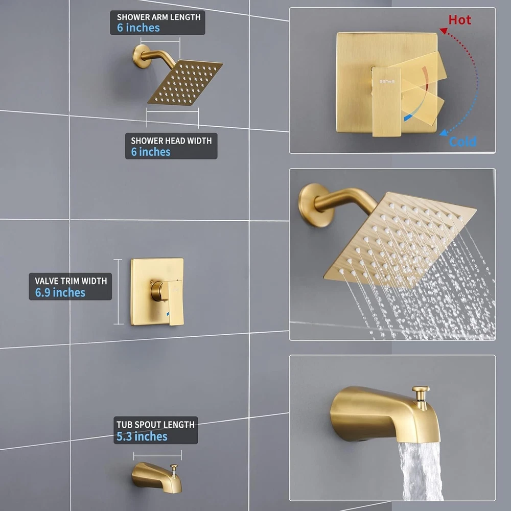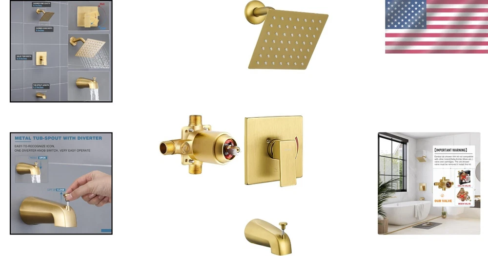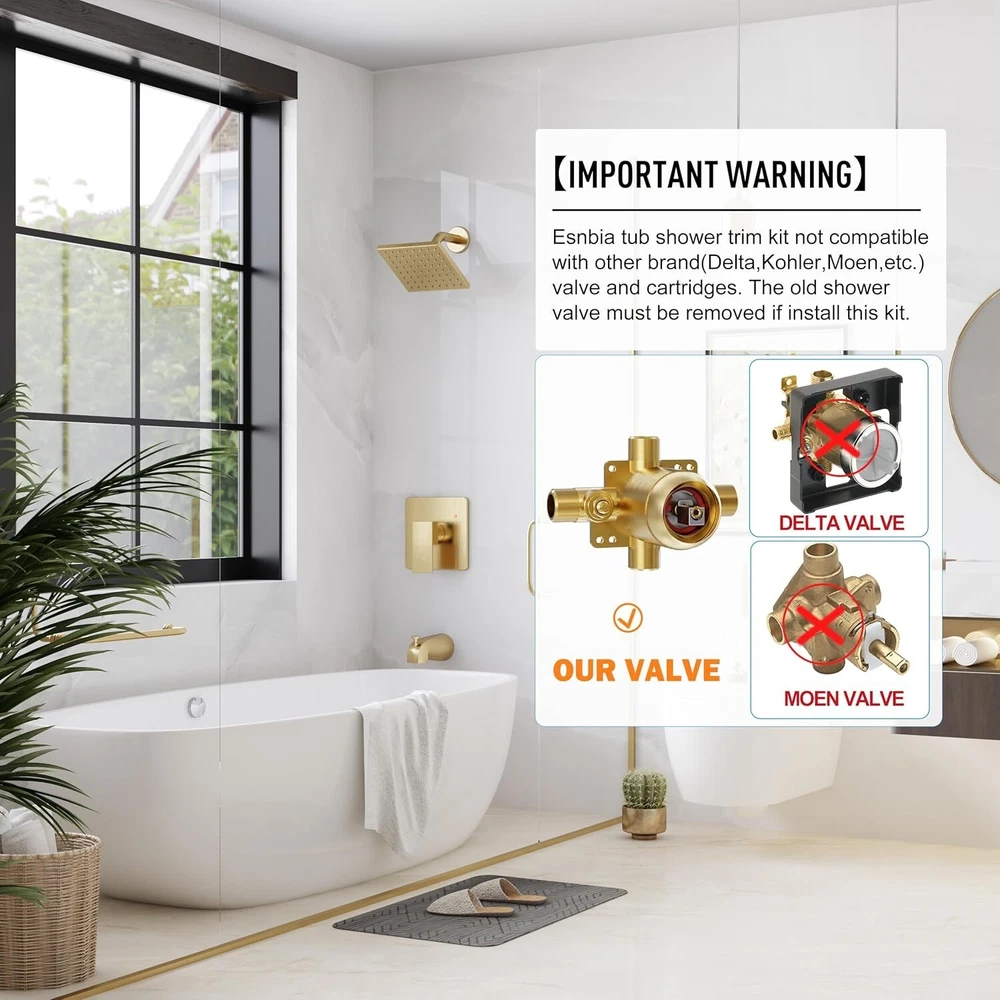 Brushed Gold Tub and Shower Kit with 6-Inch Rainhead – Modern Bathroom Upgrade ‹ › ‹ › ‹ › ‹ › ‹ › ‹ › ‹ › ‹ › Brushed Gold Tub and Shower Kit with 6-Inch Rainhead A Modern Bathroom Upgrade Transform your bathroom into a luxurious oasis with this stunning Brushed Gold Tub and Shower Kit. Designed for modern elegance and exceptional performance, this kit promises a refreshing escape every time you bathe. Features: 6-Inch High Pressure Rain Shower Head : Indulge in a waterfall-like shower experience that offers consistent, powerful performance—even under low water pressure. CUPC Certified Pressure Balance Valve : Crafted with a brass valve body, this valve allows you to easily adjust the flow of cold and hot water, providing a customizable bathing experience. High Flow Rate Tub Spout : Featuring a 5.3-inch spout length, this tub spout offers an unrestricted flow rate that fills your tub quickly and efficiently. Anti-Corrosion Finish : The multi-layer brushed gold finish resists daily scratches, corrosion, and tarnishing—ensuring that your fixture remains as stunning as the day it was installed. Complete Tub and Shower Package : Includes all essential components: shower valve with valve trim, 6-inch rain shower head, 6-inch shower arm, and tub spout with diverter. Benefits: Elevates the aesthetic of any bathroom with its sleek, modern design. Offers a rejuvenating, spa-like shower experience. Durable and long-lasting materials ensure reliability. Quick and easy installation with standard 1/2" U.S. plumbing connections. Why Choose Our Brushed Gold Tub and Shower Kit? Revitalize your daily routine with the elegant Brushed Gold Tub and Shower Kit. Designed to deliver a luxurious shower experience, this kit not only enhances your bathroom's decor but also ensures you enjoy consistent water pressure and customizable flow. With its anti-corrosion finish, your investment promises durability and beauty for years to come. Note: This kit is not compatible with existing fixtures or plumbing. Ensure your setup aligns with the specifications. Upgrade your bathing experience today! Shipping Free & Fast Shipping - We offer free shipping to most of the USA with a normal delivery time of 3-7 days. However, due to the current situation, additional delivery time (up to 3 weeks) may be required for some items. Alternative Carriers - We may use alternative carriers (e.g. USPS, FedEx, UPS, etc.) to ensure your package arrives safely and on time. Due to the use of multiple carriers, we are unable to provide a tracking number automatically. Handling Time - Orders are processed and shipped within 1-2 business days of receiving cleared payment. Shipping Restrictions - Shipping to Alaska, Hawaii, Puerto Rico, Guam, and other US territories may incur shipping charges or delivery restrictions. Please contact us before ordering, or your order can be refunded/cancelled. State Restrictions - There may be restrictions based on your state of purchase. For example, certain items may not be shipped to California due to state regulations. Contact for Tracking Updates - If you require tracking updates or have any concerns about the delivery of your order, please feel free to contact us, and we will be happy to assist you. Return Please see our eBay Return Policy. Thank you. Payment We accept all major credit cards, PayPal, and Apple Pay for your convenience. Your payment information is secure and encrypted to ensure a safe and seamless transaction. Please complete your payment within 3 days of purchase to avoid any delays in shipping. Feedback Your feedback is extremely important to us. We strive to provide the best products and customer service possible. If you are satisfied with your purchase, please take a moment to leave us a positive review. If you have any concerns or issues with your order, please contact us before leaving negative feedback. We are committed to resolving any problems and ensuring your satisfaction. Contact Us If you have any questions or concerns, please feel free to reach out to our customer support team. You can contact us through the eBay messaging system. We are available Monday to Friday, 9:00 am to 5:00 pm EST, and we will do our best to respond to your inquiry within 24 hours. Thank you for supporting our small family business! UPC: Not Set Item Weight: 5.88 lb Flow Rate: Not specified Unit Quantity: 1 Suitable For: Shower,Bathroom Material: Brass Features: Quick Cleaning,Anti-Corrosion Labels & Certifications: Not Set Room: Bathroom Items Included: Tub Spout,Shower Arm,Shower Head Water Feed: Not specified Brand: Unbranded Type: Complete Shower System Number of Faucet Handles: 1 Number of Faucet Holes: Not specified Color: Brushed Gold Finish: Brushed Handle Type: Single Handle Shower Head Shape: Round Installation: Wall Mounted Item Height: Not Set Item Length: Not Set Item Width: Not Set Model: Not Set Faucet Hole Spacing: Not specified Faucet Mounting Type: Embedded Manufacturer Warranty: Not Set Minimum Pressure: Not specified Power Rating: Not specified Shower Head Diameter: 6 inch MPN: Not Set Manufacturer: Not Set Number of Spray Patterns: Not Set Temperature Control: Not specified Shower Head Type: Rain Shower Product Line: Not Set Style: Modern Spray Patterns: Not Set Country/Region of Manufacture: Not Set Unit Type: lb Shower Head Included: Not Set Assembly Required: Not Set