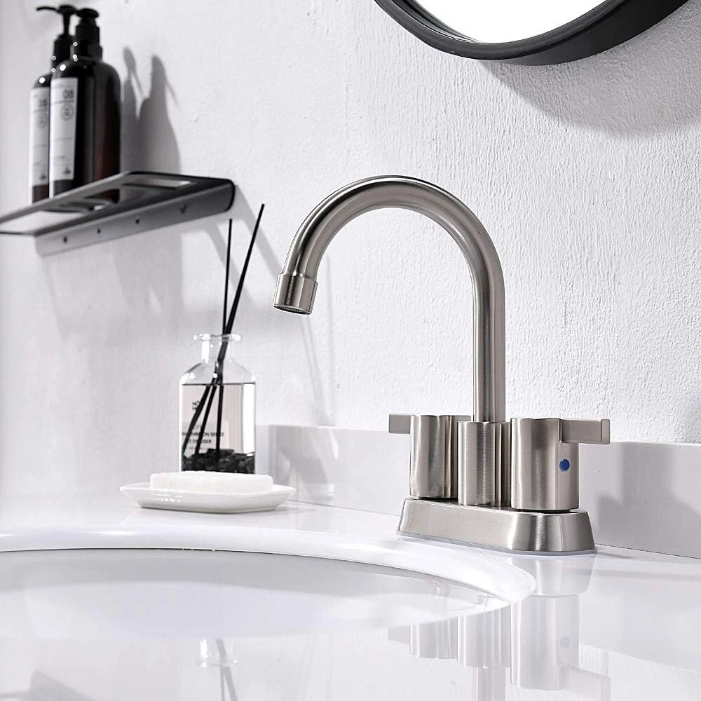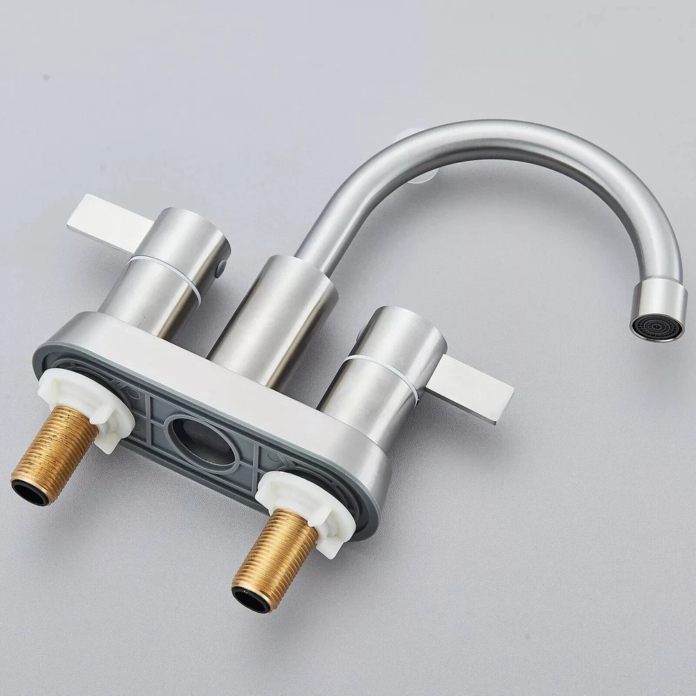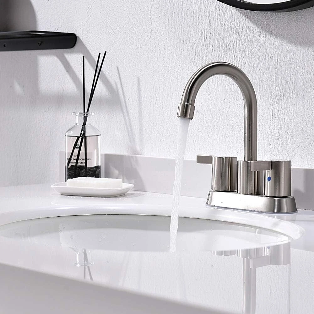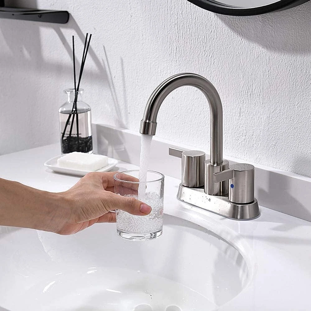 Spout Height: 5.51 in Number of Faucet Holes: 3 Manufacturer Warranty: 5 Years Finish: Brushed Nickel Handle Type: Knob Room: Bathroom Style: Modern Country/Region of Manufacture: China Brand: Rozin Model: Commercial Faucet Hole Spacing: 4 in Shape: Mid Arc Item Height: 8.46 in Custom Bundle: No Type: Bathroom Sink Faucet Color: Gray MPN: x Features: Integrated Water Filtering, Quick Cleaning, Water Conservation, 4-inch Widespread Number of Faucet Handles: 2 Material: Brass, Copper, Stainless Steel Installation: Deck Mounted Faucet Mounting Type: Centerset Assembly Required: Yes Suitable For: Bathroom Sink, Tub Faucet Items Included: Mixing Valve Labels & Certifications: Low Lead Compliant