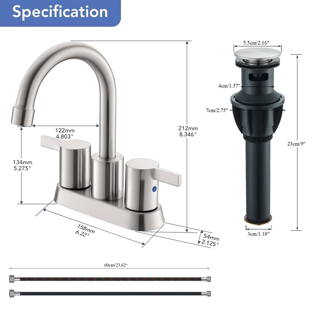 Product Description Type: 4“widespread 3 holes bathroom faucet Mounting:Deck mounted Finish:Brushed Nickel Main Body Material: Brass Handle Material: Brass Valve: Reliable Ceramic Cartridge The ceramic disc cartridge can survive 500,000 times open & close test. Sophisticated ceramic engineering provides both convenience and control precision. Water Feature:hot cold water Water Pressures: Minimum 0.5 bar, 1.0 bar recommended Style:Contemporary Flow Rate:2 GPM (7.57 L/min) Fit for 4 inch 3 Hole Basin 3/8" American Standard Warranty: 5 Years Payment We accept PayPal. Contact us If you have any questions, please be free to contact with us,we will answer your questions ASAP. We will answer your question via email, please check your email for the answers. Feedback Please contact us if you have any problems and suggestions. Usually, you will get reply in 24 hours. In case any broken problem happens, contact us without hesitation, we will solve the problem until satisfaction. 5 years after sale service for all our faucet.
