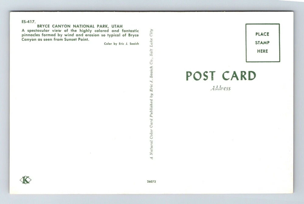 Bryce Canyon National Park Utah Sunset Point Scenic Landmark Chrome Postcard You will receive the exact postcard in the picture. We use a high quality scanner to capture pictures of the front and back for every postcard we have listed. Postcards will be in the condition as shown in the pictures. We ship Mon-Fri. We also offer combined shipping discounts or free shipping. If we have shipping on your listing you can buy as many additional postcards as you want and they will ship for free after the fist postage is paid. If you select first class shipping and pay the extra your postcard will be shipping as a package with extra protection. If you choose free shipping or $1.50 shipping your postcard will be shipped in a standard envelope with soft plastic sleeve and do not bend written on the envelope. Orders of 15 or more cards or with single cards over $20 in them will automatically be upgraded to first class and at least a photo mailer. If you have any questions feel free to ask. We are willing to consider reasonable offers and we offer discounts on orders of more than one card. Thank You _gsrx_vers_1436 (GS 9.0.5 (1436)) _gsrx_vers_1608 (GS 9.5 (1608)) _gsrx_vers_1653 (GS 9.7.5 (1653))