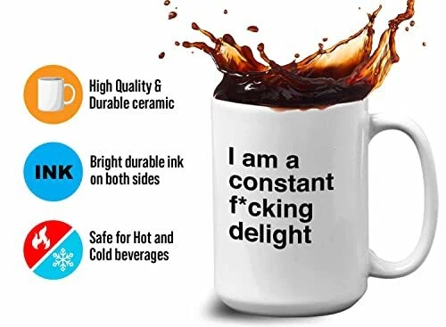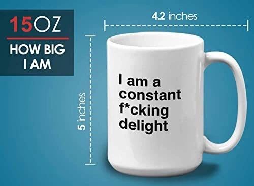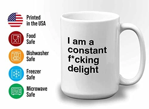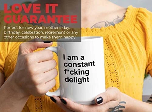 Menu 1. We require immediate payment. 2. We currently accept payment via eBay managed payments only. 3. Once payment is cleared, we will dispatch your shipment within 1-3 business days. Please refer to the "Shipping" tab for more information regarding shipping speed to your destination. Bubble Hugs Funny Jokes Coffee Mug 15 Oz White - I Am A Constant Fcking Delight - Sarcastic Funny Saying Mean Words Laughable Insulting Quotes for Friends Coworker Family Product description A PRESENT TO YOUR SOMEONE SPECIAL --- Our funny dictionary mug is a perfect gift especially if they love taking their morning coffee on the commute or on-the-go. Be it for your brother, sister, mom, dad, grandpa, grandma, best friend, boyfriend, girlfriend, son, daughter, fiance, husband, wife, in laws, cousins, aunts, uncles, boss, coworkers, him or her, you can also give this coffee mug to anyone and see them enjoy their happiness! EXCLUSIVE DESIGN LINGUISTIC JOKE COFFEE MUG --- T’s no better combination than having your beverages with this novelty mug that describes who you are. Our mug is exclusively designed by professional designer to fulfill your need and a great choice to hold your beverages hot or cold for hours. No more using disposable coffee cups! IRREPLACEABLE GRAMMAR POLICE MUG FOR A BUSY EVERYDAY LIFE --- Keeps drinks tasty! Our english major collegetudent coffee mug can withstand low to high temperature. This hilariou idiom coffee mug has outstanding print quality that will last a long time. We design our pun joke enthusiast mug with your comfortability in mind! PERFECT FOR ANY OCCASIONS --- Our vocabulary puns mug will be a perfect gift for Mother’s day, Father’s day, Sarcasm, birthday party, anniversary, graduation, Friendship’s day, Bosses’ day, retirement gift, Christmas party, Santa secret Gifts, and Thank you gift! Perfect as a gift for any occasions and will thrill the lucky recipient! WHAT ARE YOU WAITING FOR? --- Grab our grammar humorous mug now and see the difference with others. Do not order the second one if our pun joke enthusiast coffee mug does not make you smile. GET THIS 11 and 15oz Coffee mug NOW! PLEASE MESSAGE US IF YOU HAVE ANY OTHER QUESTIONS, AND MANY THANKS FOR READING ALL OF THIS. Copyright ©#. All Rights Reserved.
