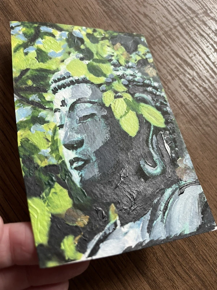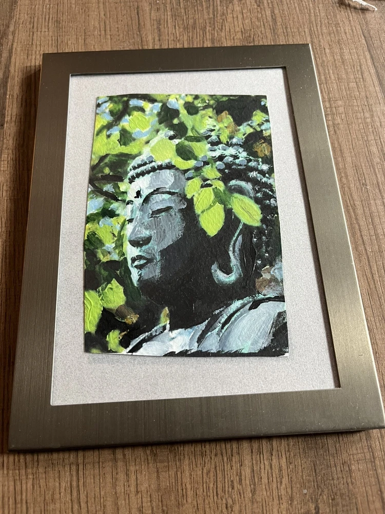 This is a small original acrylic painting of Buddha, produced in 2008. It is signed by the artist and measures 5 inches in height and 3 inches in width. The painting is unframed (picture in frame is for illustrative purposes only) and features a figurative art style, with a religious theme. It is a one of a kind handmade piece created using acrylic painting technique. FREE SHIPPING. please ask any questions.
