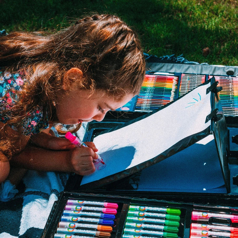 Product Description Art 101'S Budding Artist 154-Piece Trifold Easel Art Set Helps Learn And Grow With The Self-Expression Of Art! Tired Of Looking At A Plain Fridge? Art 101 To The Rescue! This All-In-, Kid-Friendly Art Set Includes Everything Your Youngster Needs To Inspire Artistic Greatness. Let Your Experiment With Color When They Choose From A Variety Of Colorful Markers Included In Their New Art Set. Our 154-Piece Art Set Markers Are Short And Wide, Making It Easy For Little Hands To Grip And Use. The Water-Based Ink Formula Makes Our Markers Washable Off Non-Pouruous Surfaces. Also Included Are 24 Crayons (With Fun Names!), 24 Oil Pastels, 24 Colored Pencils, 12 Watercolor Cakes, 1 Sketch Pencil, And More, Giving Your Young Artist The Ability To Try A Variety Of Different Mediums. Use The Included 20 Drawing Papers To Get Your Artist Started. This Set Is Equipped With A Built-In, Pop-Up Easel, Making It Easy For Your To Color And Create Anywhere You Can Open Your Case. Take It On A Road Trip, To Grandma'S House, Or Open It Up At Home. Just Clip A Piece Of Paper Or Coloring Sheet Onto The Easel, And Let Their Creativity Soar. Young Artists Have Easy Access To A Variety Of Components On Each Side Of The Easel To Choose From. Set Includes: 36 Colorful Markers , 24 Crayons , 24 Oil Pastels , 24 Colored Pencils , 20 Drawing Papers , 12 Watercolor Cakes , 1 White Watercolor , 1 Mixing Palette , 1 Paint Brush , 1 Pencil Sharpener , 1 Eraser , 1 Glue Tube , 1 Sketch Pencil , 1 Stapler , 1 Pair Of Scissors , 1 Ruler , 1 Drawing And Painting Guide , 1 Organizing Case With Pop-Up Easel From the Manufacturer Have fun and learn with Art 101. The Art 101 154pc Trifod Easel Art Set comes with 36 markers, 24 crayons, 24 oil pastels, 24 color pencils, 20 sheets of paper, 13 watercolors, 2 clips, 1 palette, 1 paint brush, 1 sharpener, 1 eraser, 1 glue tube, 1 sketch pencil, 1 stapler, 1 scissor and 1 ruler with a fold up easel in a PVC frifold organizer case. It is a great value and has all the components any at any level would love to have. Includes Everything Your Needs To Explore Their Creativity Choose From Markers, Crayons, Oil Pastels, Watercolor Paints, And Colored Pencils Convenient Carrying Case Folds Up So It Can Be Used At Home Or On The Road Case Includes Pop-Up Easel Inside, Making It Easy For Your Young Artist To Color Anywhere Creativity Strikes Comes with a variety of art components Great set for any level of artist Portable carry case Bright and colorful to inspire creative side Keeps you components organized