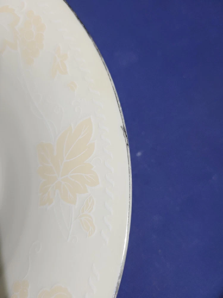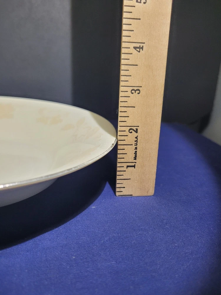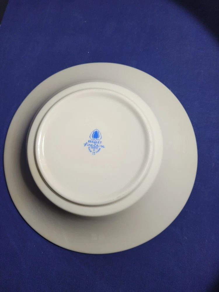 Salad/soup bowl Budlet China Ivory pattern 8" round bowl Used condition. No cracks or chips. Utensil marks and some of silver trim is worn off. Discontinued pattern I do offer combined shipping. Sometimes I can offer a better deal than what ebay calculates. Please ask questions prior to bidding. I offer free local pick up in the Cuyahoga Falls, Ohio area. 00