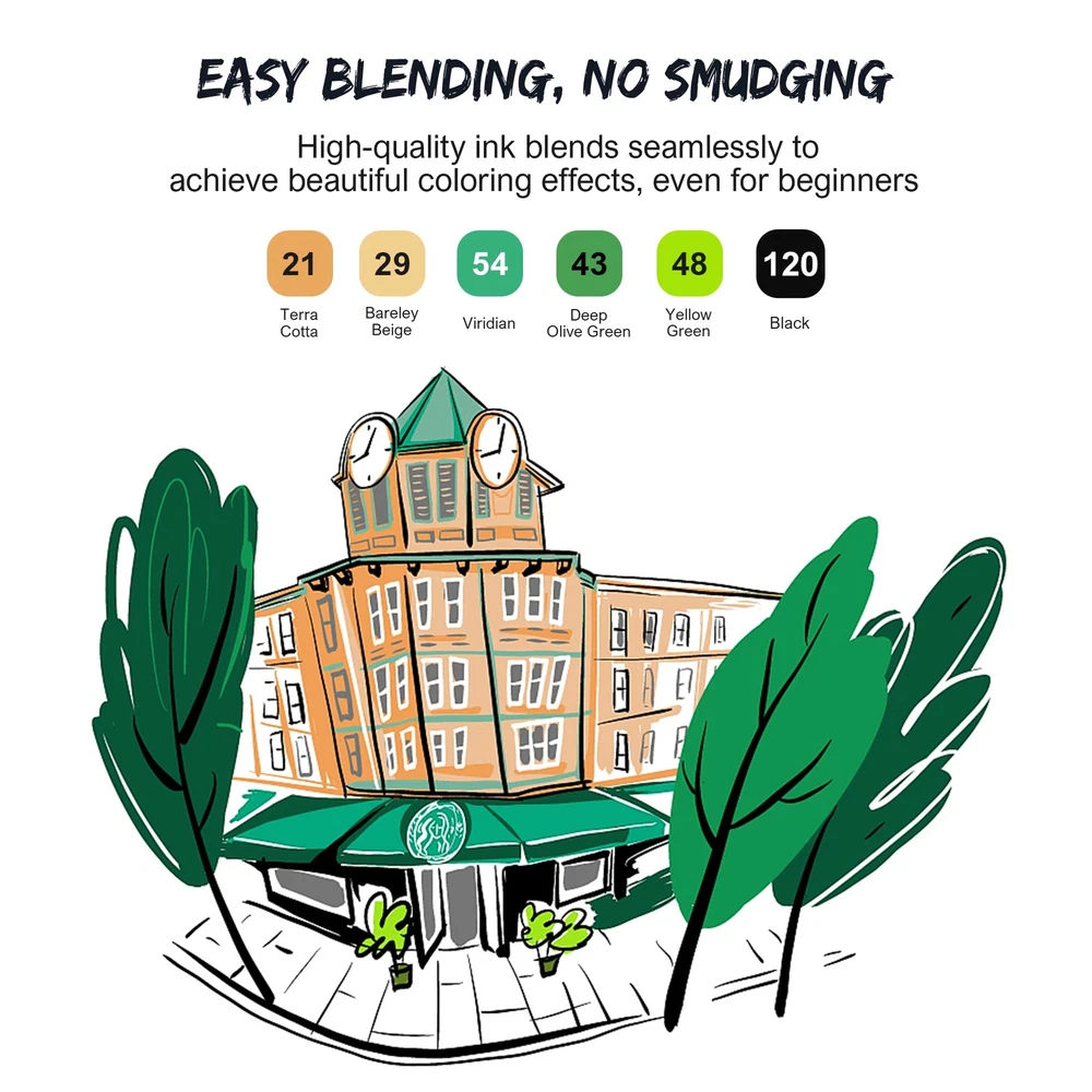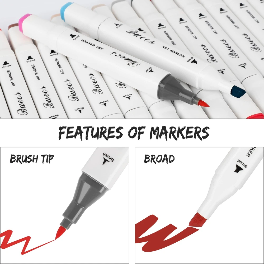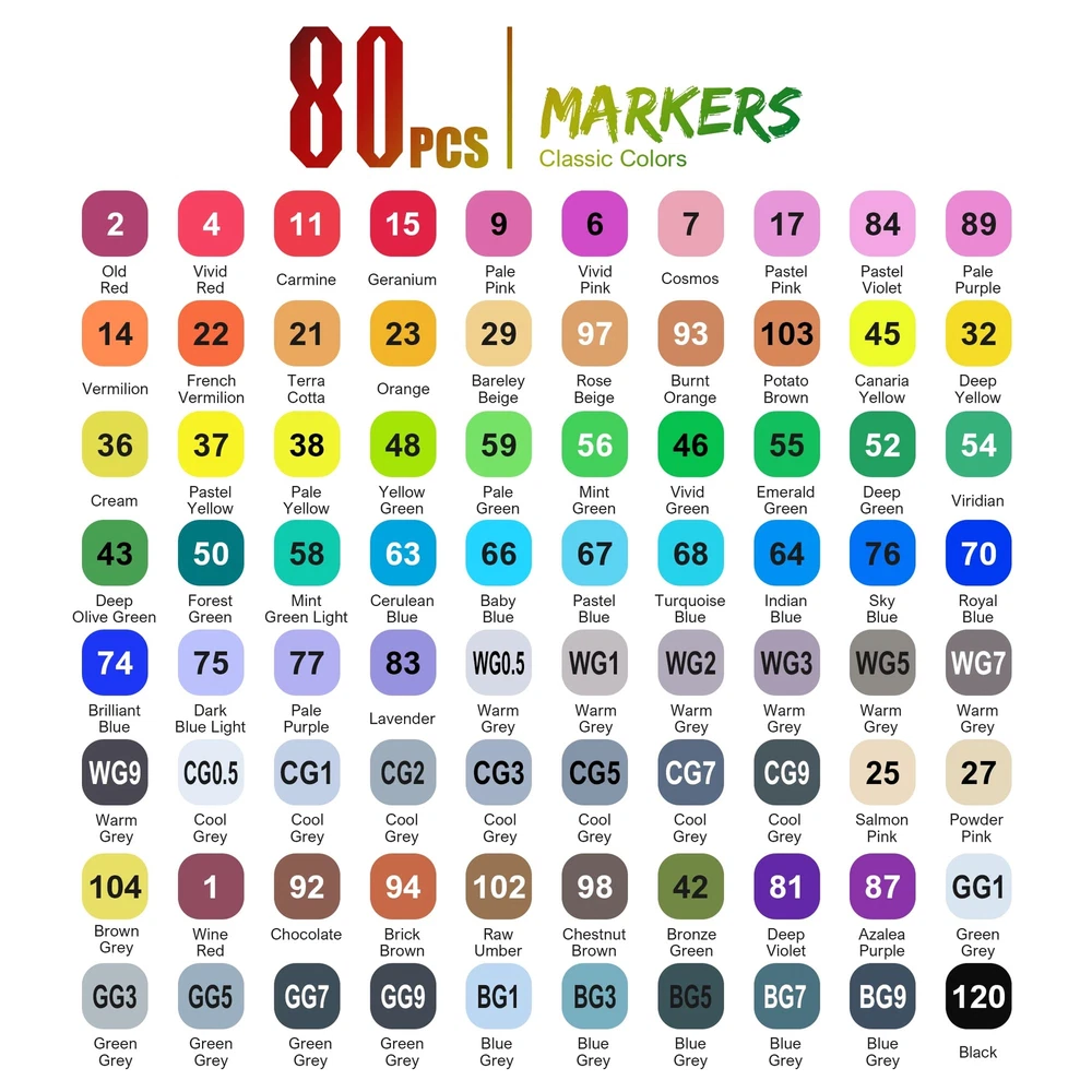 Color variety, practical, double - end pen wide range of use Thin head marker pen stroke is more strong, agile, uniform color, mostly used to outline some small parts, such as: point, line and other areas The tip of the wide marker is flat and square, with soft strokes and full colors. Because the cutting Angle of the tip changes a lot, the stroke formed by the tip changes a lot, so it is often used for some color filling 80 classic colors, suitable for coloring books, diary, calligraphy, coloring, writing, lettering, notes, drawing, painting, etc Ink has low odor and environmental protection Service guarantee: if you are not satisfied with our products or have any questions, please feel free to contact us