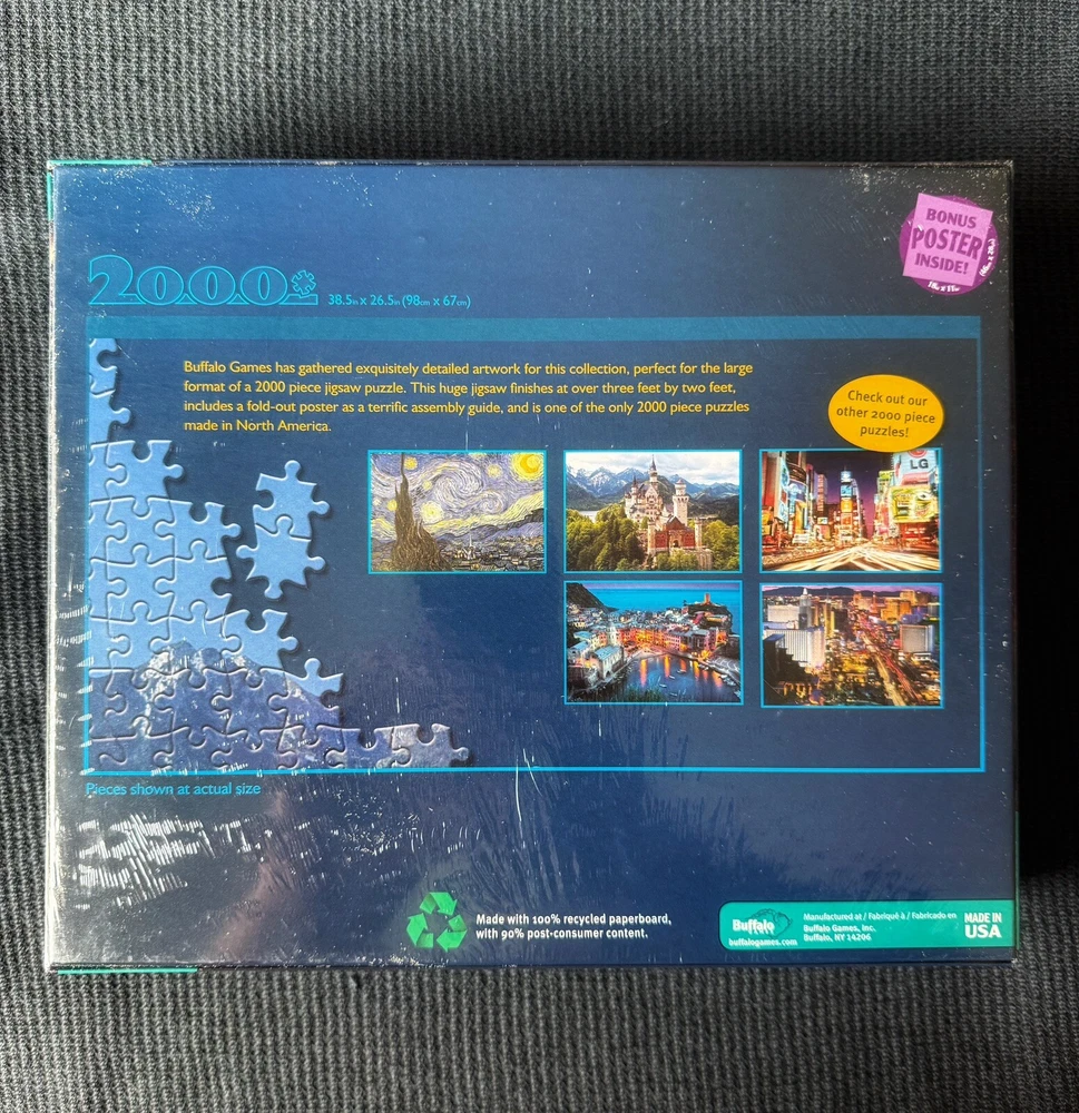 Experience the beauty of Cinque Terre, Italy with this stunning 2000 piece jigsaw puzzle by Buffalo Games. Featuring vibrant multi-color landscapes, this puzzle is perfect for puzzle enthusiasts of all ages, recommended for 14 years and up. Made of high-quality cardboard material, this puzzle is designed to provide a satisfying challenge and hours of fun. With its complete set of pieces, this puzzle is sure to impress. Whether you're a seasoned puzzle expert or just starting out, this Buffalo Games puzzle is the perfect addition to your collection. Don't miss out on the opportunity to experience the charm of Cinque Terre, Italy through this beautiful jigsaw puzzle.
