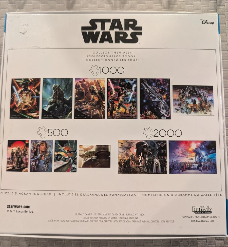 Immerse yourself in the world of Star Wars with the Buffalo Games 3370 This is the Way Jigsaw Puzzle. Featuring a vibrant and colorful design, this 1000-piece puzzle is perfect for fans of all ages. The puzzle is made of high-quality cardboard material and is suitable for ages 14 and up. The puzzle is a great addition to any collection and is perfect for family fun nights or solo relaxation. With its Movie & TV theme and Star Wars character family, it is sure to please any fan of the franchise. Get ready to explore the galaxy far, far away with this exciting and challenging puzzle. This puzzle was previously put together and then coated with a mod-poge varnish for a truly one of a kind look and feel. You will not be disappointed with this great addition to your puzzle library.