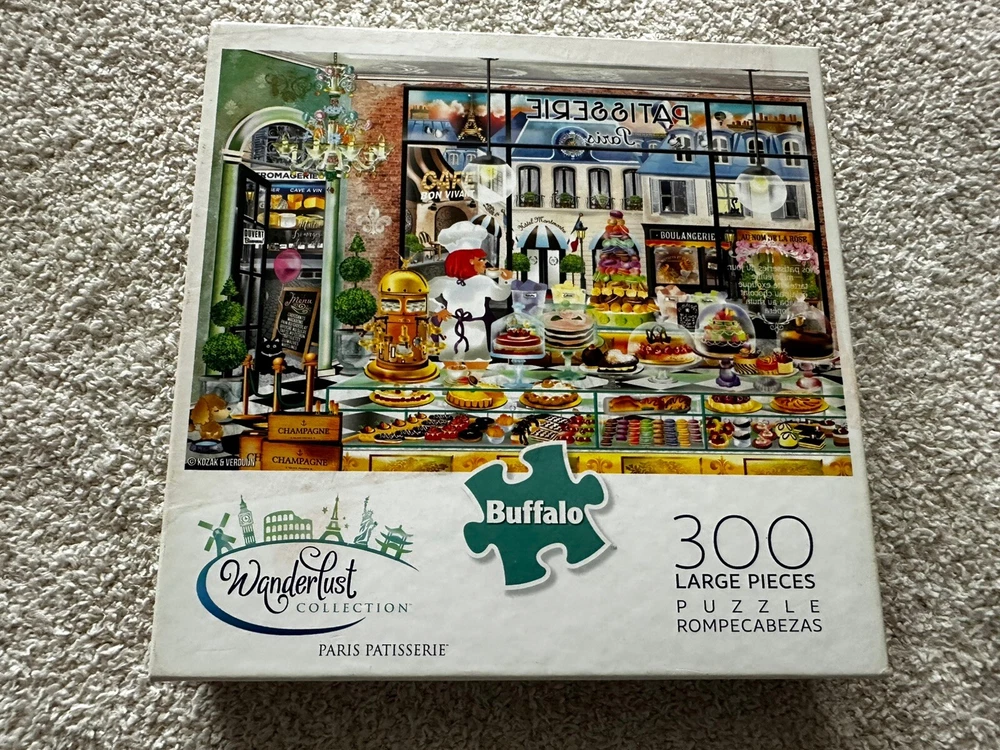 Enjoy a delicious challenge with the Buffalo Puzzle Paris Patisserie 300 Piece Puzzle. This puzzle features delightful pastel colors and a charming French patisserie theme that will captivate your mind and satisfy your love for puzzles. Each piece is large and sturdy, making it perfect for both young and old puzzle enthusiasts. With its intricate design and beautiful details, this puzzle will provide hours of entertainment and stress relief. It is perfect for a cozy evening with family and friends or for a relaxing afternoon alone. The Buffalo Puzzle Paris Patisserie 300 Piece Puzzle is a must-have for any puzzle lover who wants to experience the thrill of a new adventure while enjoying the warm feeling of completing a challenging puzzle.