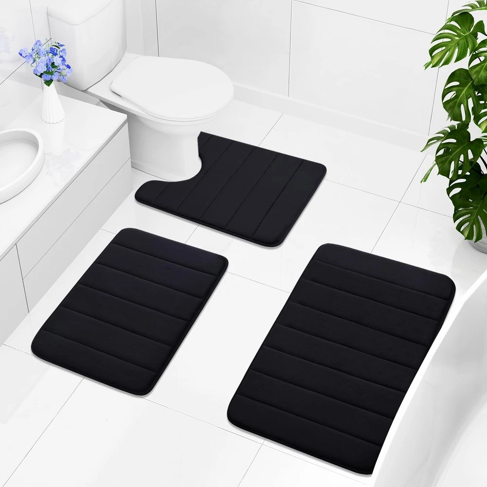 SOFT & COMFORTABLE: Bath mats are filled with polyurethane memory foam and the microfiber velvet outer material, soft and cozy, skin-friendly, relieve pressure and fatigue on your feet NON-SLIP PVC BACKING: Bathroom mats feature a non-slip mesh back to prevent the mat from shifting and skidding, and the rubber back prevents water from seeping to the soft surface. WARNING: Place mat on CLEAN DRY SMOOTH FLOOR only. Water under bath mats can cause it to slip. Keep bottom of mat dry. Before using bath carpet, test with foot to ensure it doesn't move WATER-ABSORBENT: Bath rugs are treated with memory foam to absorb water and dry quickly, keeping your bathroom away from water, and keep clean every day EASY CLEANING: Machine wash in cold water. Do not use chlorine or bleach. Tumble dry on low heat or lay to air dry, the color will not fade with continual uses. Please measure the size before purchasing these mats Remove the Crease: Our bath mat is packaged using our innovative rolled packaging method. To effectively remove the creases, please follow these steps: 1. Place a damp towel over the folded sections of the bath mat; 2. Gently press and move the iron across the mat periodically. This process should significantly reduce the creases, Once the creases are minimized, the bath mat can be placed anywhere in the bathroom
