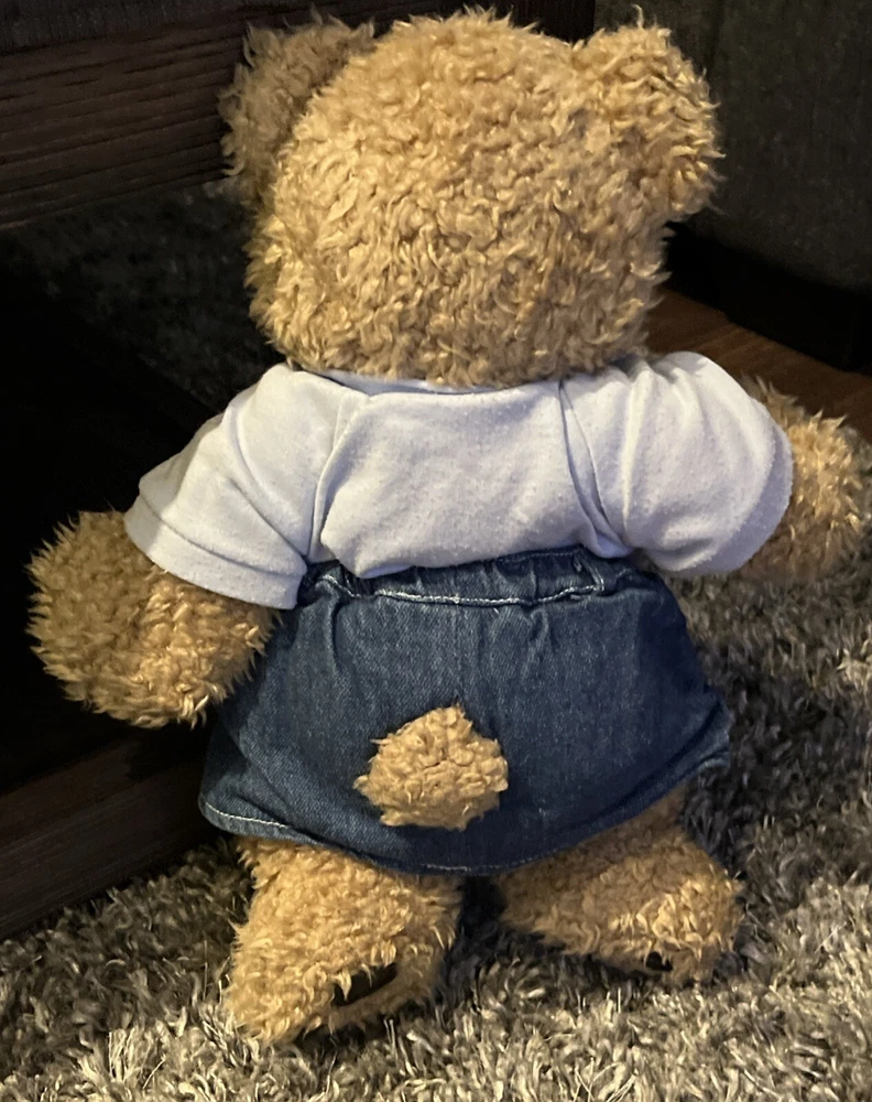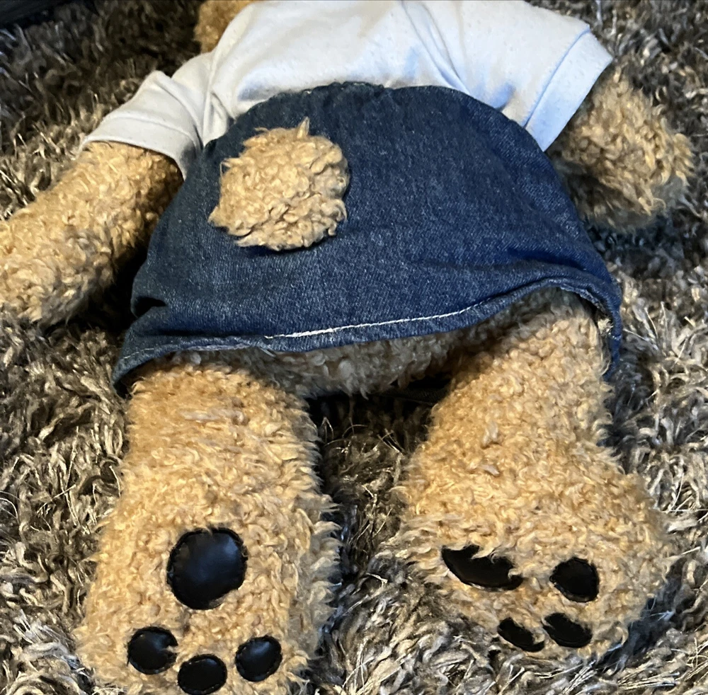 This adorable 14” teddy bear from Build-A-Bear Workshop is perfect for any occasion. He is a plush bear with a hand-stuffed feature, making him extra cuddly. He comes dressed in a cute shirt and jeans, ready to be played with or displayed. This bear is part of the Build a Bear collection and is made in China. He is a great gift for bear lovers of all ages.