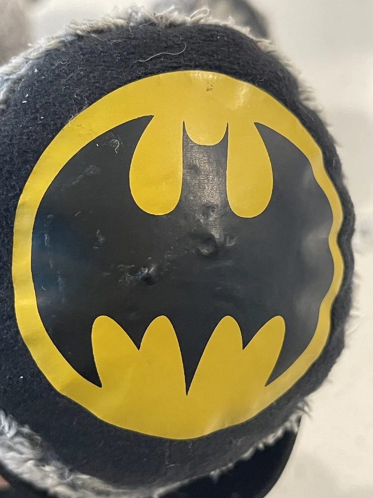This Build-A-Bear Workshop plush bear is the perfect addition to any superhero fan's collection. With a gray color and 17" size, this retired 2016 Batman Teddy Bear Stuffed Plush is a must-have for any occasion. The bear comes without packaging and is sold as a single unit. Featuring black eyes and a DC Comics collection, this plush bear is made of high-quality materials and weighs 13 oz. It is suitable for ages 3+ and is perfect for any antique or vintage collector. This bear is not personalized and is not signed, but it is still a great addition to any collection. This comes with the bear and the Batman suit. From a smoke-free home.
