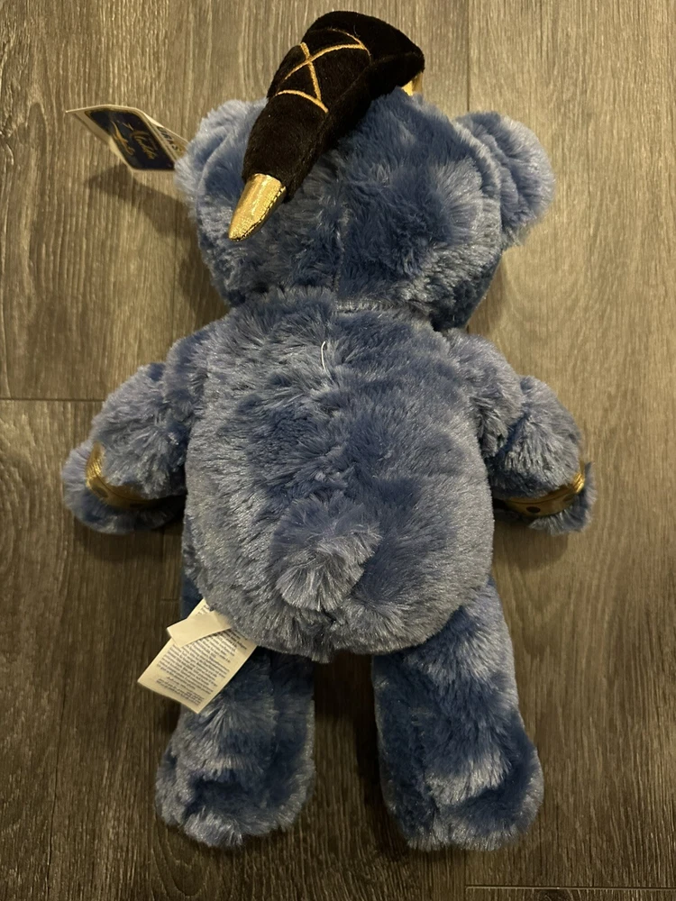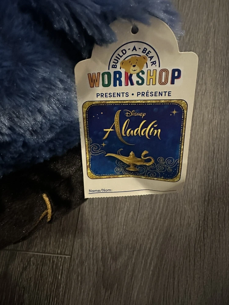 This 16-inch plush toy from Build-A-Bear Workshop features Genie from Disney's Aladdin in his iconic blue color. Made from soft and cuddly materials, this retired collectible bear is perfect for all occasions. The bear's black eyes and friendly expression make it a charming addition to any collection. Ideal for fans of the beloved franchise, this BABW bear is a must-have for any Disney collector. Its unique features and high-quality construction make it a valuable and treasured item. Celebrate your love for Aladdin and add this beautiful Genie plush toy to your collection today. 12-5-24