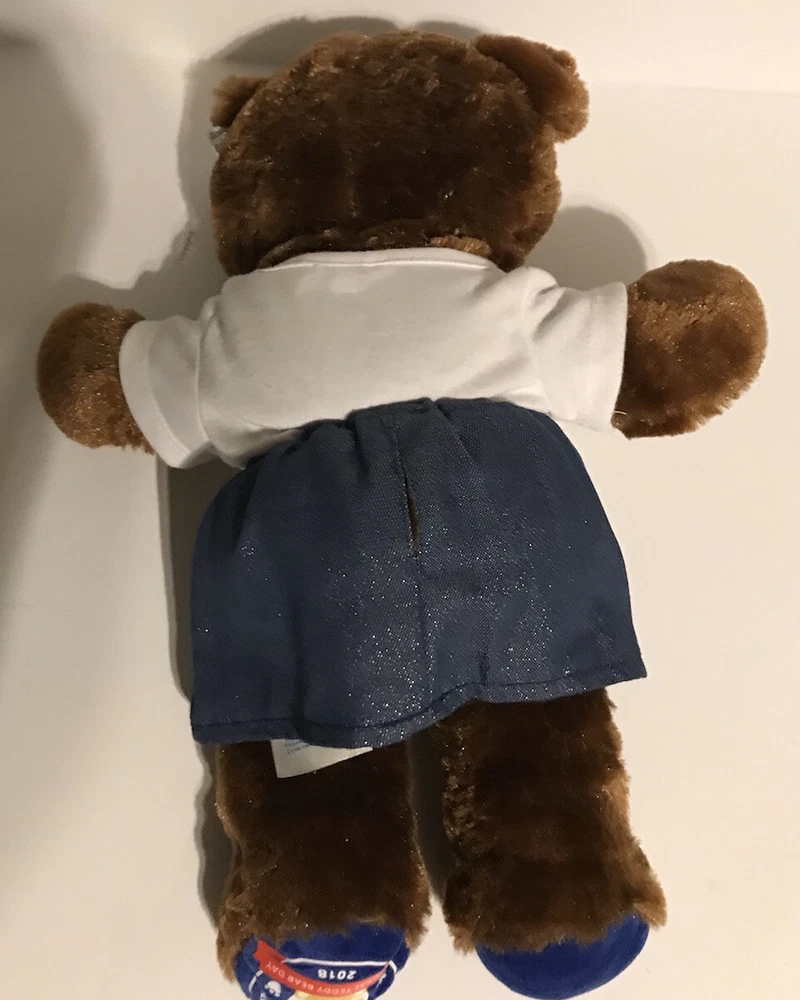 This beautiful 15-inch plush bear from Build-A-Bear Workshop is the perfect addition to any collection. With a rich brown color and black eyes, this collector bear is an original and licensed reproduction from the popular franchise. It comes without packaging but includes clothing and other items to make it a perfect gift for any occasion. The bear is made of high-quality plush material and weighs 11 ounces. It is a great item for children aged 3-4 years and above. This teddy bear is an anniversary bear and is part of the Build A Bear collection. It is a single unit and is not handmade.