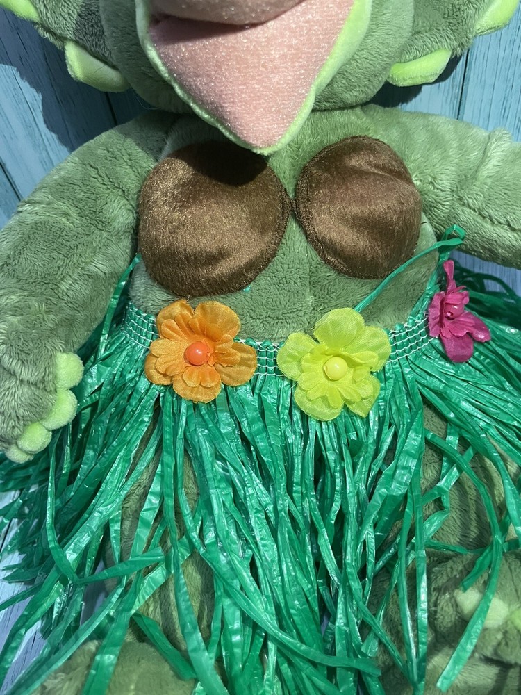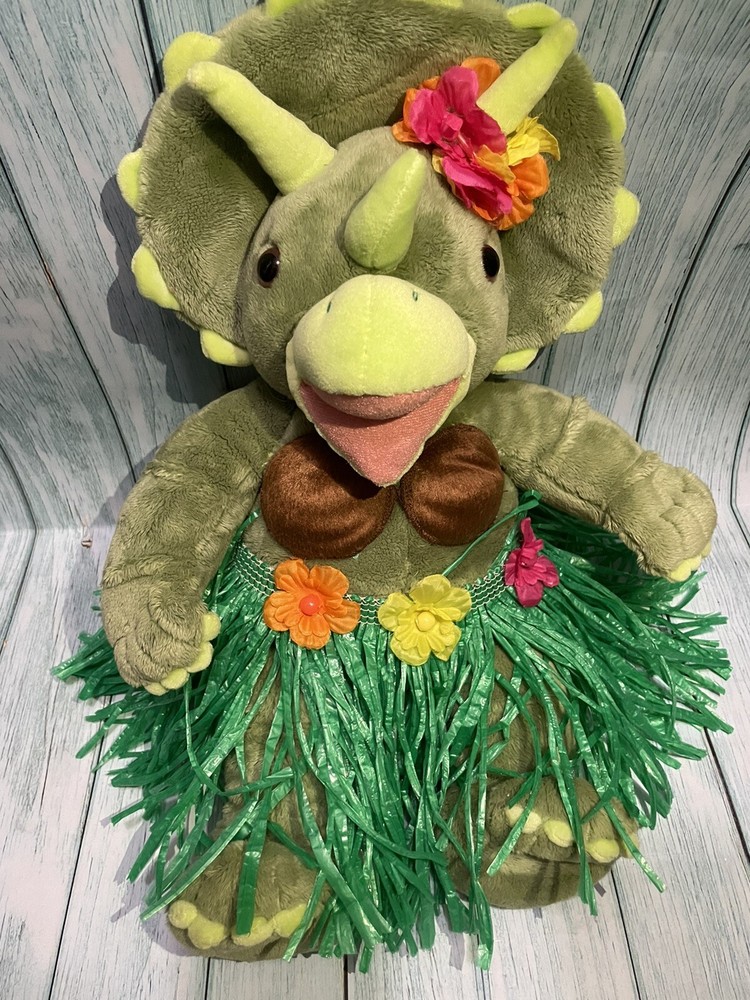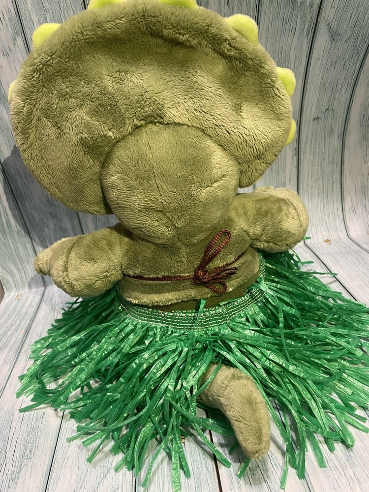 This Build A Bear Triceratops Dinosaur plush is a must-have for any dinosaur lover! The 18 inch green dino is made of soft plush material and comes with clothing. It's perfect for adding to a collection of animal-themed toys and would make a great addition to any child's room. The triceratops is an original, licensed reproduction from the Build-A-Bear Workshop franchise and is not vintage or antique. P1