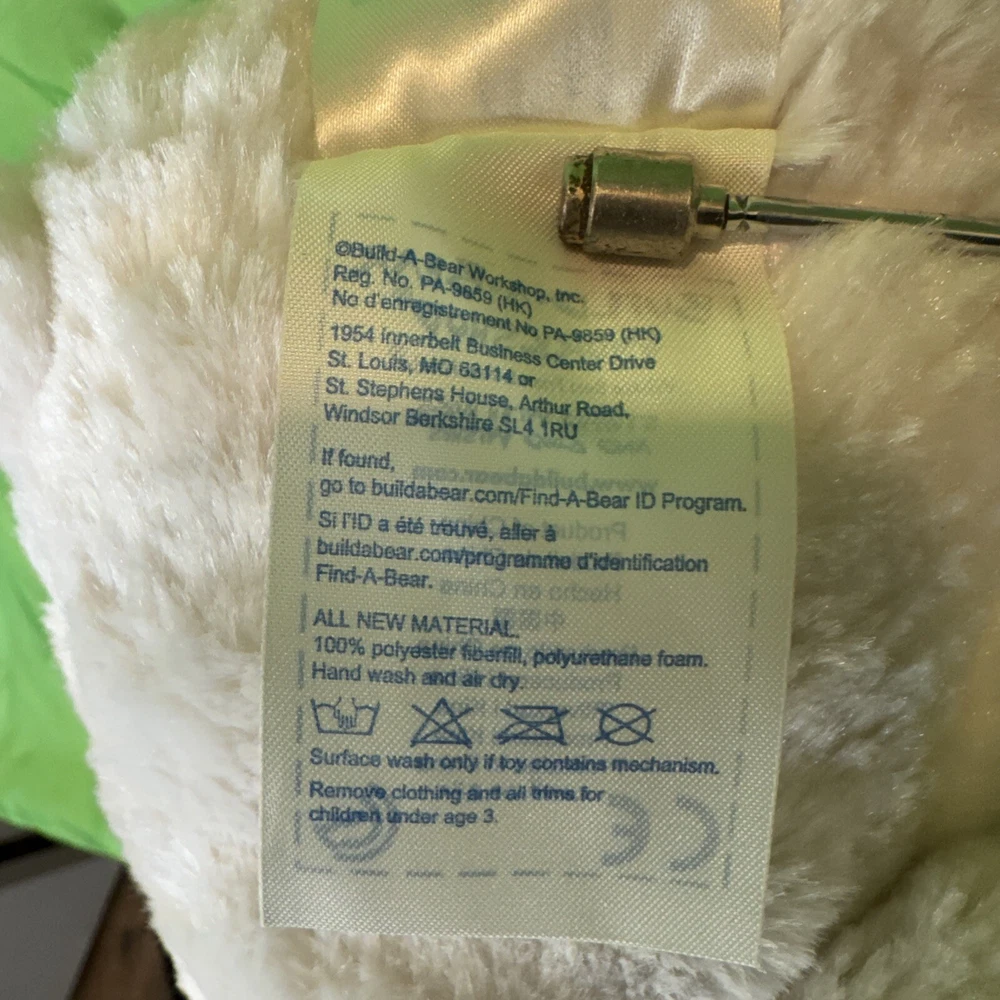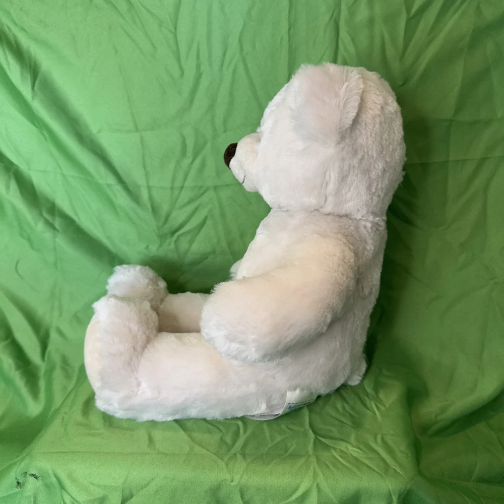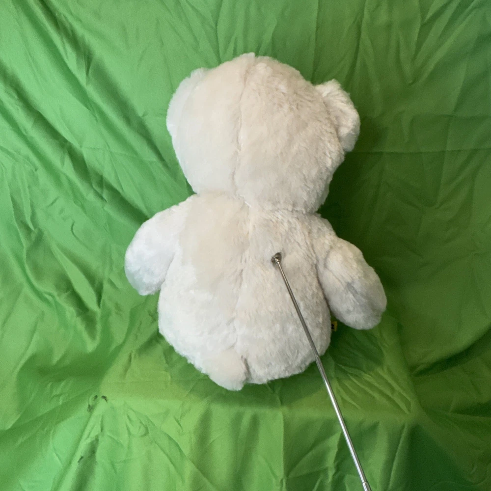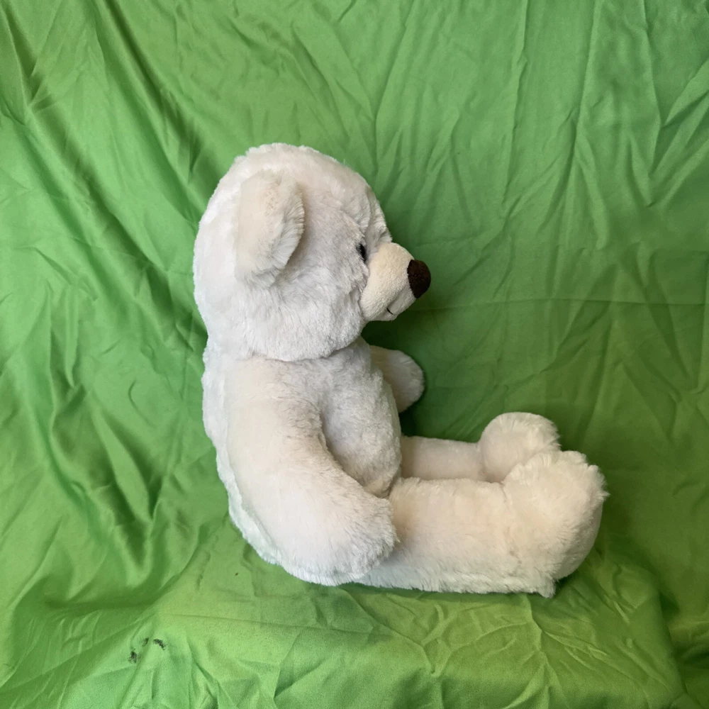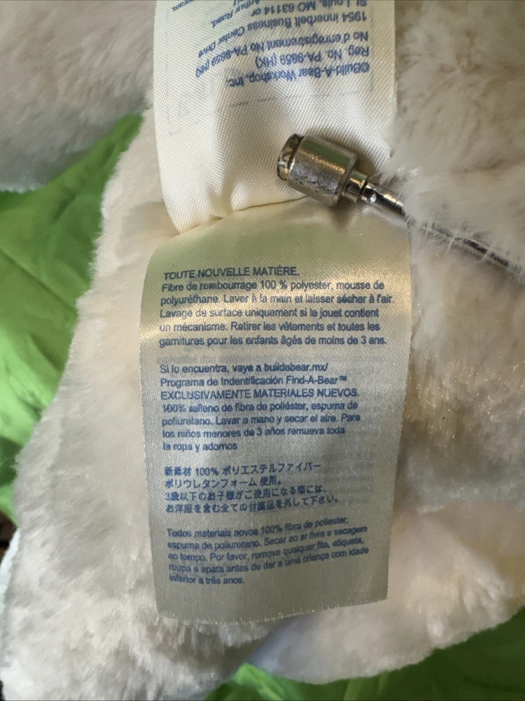 This product is a Build-a-Bear stuffed animal teddy toy doll in the color off white. It is made of plush material and is part of the Hug a Cub collection. The bear is 15 inches in size and was manufactured in 2013. It is recommended for children ages 3 and up. The bear is designed to be a toy for all occasions and features the brand's signature build-a-bear-wear clothing and accessories.