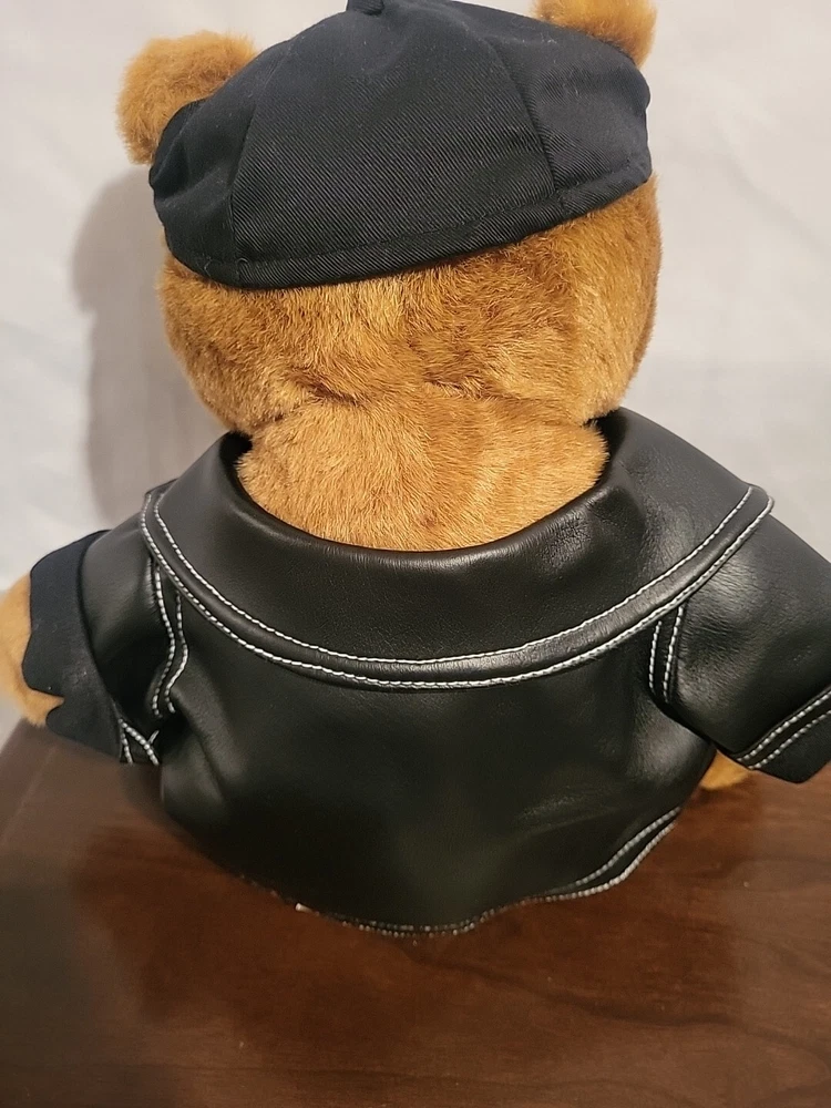 Build a Bear Vintage 1997 Classic Brown Teddy Leather Jacket And Hat