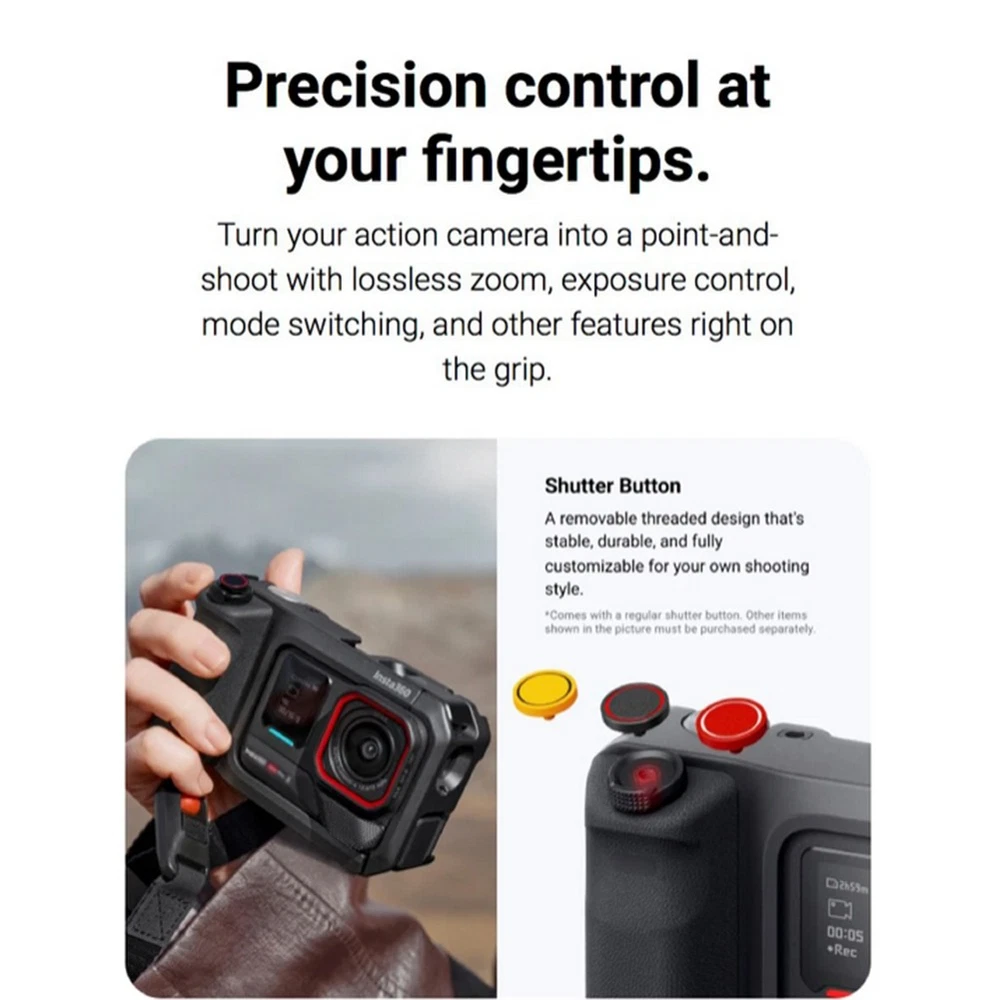 Product Description Description: 100% Brand New Original Name: Professional Long-Lasting Street Photography Grip Materials: PC, Aluminum Alloy, Stainless Steel, Silicone, Fabric Dimensions: 118.3 × 67.5 × 45 mm Battery Capacity: 2010 mAh Battery Energy: 7.82 Wh Battery Type: Rechargeable Lithium-Ion Battery Pack Input: 5V=2A, 9V=2A, 5~11V=3A Output: 5V=3A Max Compatible Models: For Insta360 Ace Pro 2 Features: 1. Professional street photography grip—newly upgraded all-in-one extended-life grip for instant capture of every moment. 2. Newly upgraded with uninterrupted power. Built-in 2010mAh battery extends runtime to 5 hours 40 minutes*, enabling unrestricted outdoor shooting. 3. Direct camera connection for precise control: Slider zoom, 2x lossless zoom, exposure adjustment, mode switching, and more via the handle. Package Contents: 1× Professional Street Photography Handle 1× Shutter Button 1× Wrist Strap 1× 3.5mm Audio Jack Cover Introduction Logistics Returns and refunds Contact Us 1.Our company is located in Shenzhen, China and has its own factory warehouses both in China and overseas. 2.We are a specialized retailer of electronic products. Our main sales products include various electronic components, repair parts and electronic product accessories, outdoor products, and automotive related products. 3.Your reviews are important to us. We would appreciate it if you could give us a good review and give you the same! Our aim is to strive for 5-star feedback and an exceptional buyer experience. Please contact us directly with any questions or concerns and we will get back to you within 24 hours. If a return is needed please check our return, shipping and payment policy for all details. 1.We will ship based on the information provided by the buyer on PayPal. Please ensure that the address and contact information are correct. If the delivery fails due to the buyer filling in incorrect information, our store will not be responsible. 2.If the delivery address is remote or in another country, it may take longer. Please be patient and wait. 3.Order placed on weekends or holiday will be handled and shipped on Monday or next working day. 4.If the item has not been delivered after the delivery time, please contact us promptly. 1.If there are quality or usage issues with the purchased items, you can contact the store to solve the problem. We will try our best to help solve the problem as quickly as possible. Please do not leave negative feedback directly. 2.If the product needs to be returned due to personal issues with the buyer, the buyer shall bear the return shipping cost on their own. 3.If you would like to return an item, please send us a message before opening a return request. 4.Items must be returned in good condition. We prefer that you test any item before use or final installation, as we will not accept returns on items that have been used or installed. 5.We reserve the right to deny warranty if we believe the returned item violates our return policy or is returned in error. If you encounter any questions, please contact us promptly during weekdays and we will answer them within 24 hours. The package address is NOT for return. For all return requests, buyers MUST contact us for our return address. Introduction 1.Our company is located in Shenzhen, China and has its own factory warehouses both in China and overseas. 2.We are a specialized retailer of electronic products. Our main sales products include various electronic components, repair parts and electronic product accessories, outdoor products, and automotive related products. 3.Your reviews are important to us. We would appreciate it if you could give us a good review and give you the same! Our aim is to strive for 5-star feedback and an exceptional buyer experience. Please contact us directly with any questions or concerns and we will get back to you within 24 hours. If a return is needed please check our return, shipping and payment policy for all details. Logistics 1.We will ship based on the information provided by the buyer on PayPal. Please ensure that the address and contact information are correct. If the delivery fails due to the buyer filling in incorrect information, our store will not be responsible. 2.If the delivery address is remote or in another country, it may take longer. Please be patient and wait. 3.Order placed on weekends or holiday will be handled and shipped on Monday or next working day. 4.If the item has not been delivered after the delivery time, please contact us promptly. Returns and refunds 1.If there are quality or usage issues with the purchased items, you can contact the store to solve the problem. We will try our best to help solve the problem as quickly as possible. Please do not leave negative feedback directly. 2.If the product needs to be returned due to personal issues with the buyer, the buyer shall bear the return shipping cost on their own. 3.If you would like to return an item, please send us a message before opening a return request. 4.Items must be returned in good condition. We prefer that you test any item before use or final installation, as we will not accept returns on items that have been used or installed. 5.We reserve the right to deny warranty if we believe the returned item violates our return policy or is returned in error. Contact Us If you encounter any questions, please contact us promptly during weekdays and we will answer them within 24 hours. The package address is NOT for return. For all return requests, buyers MUST contact us for our return address. Motorcycle Bicycle Mount Selfie Stick for Insta360 X2 X3 X4 X5 DJI Action 3 4 5 76.27 USD 82.9 USD Free shipping 8% off Insta360 X2/X3/X4 Cold Shoe Mount Extension Bracket+Audio Cable for DJI Mic Mini 16.1 USD 17.5 USD 2.0 USD 8% off Safety Helmet Hard Hat Magnetic Mount Bracket For Insta360 X4/X3/X2/ONE RS 1'' 58.79 USD 63.9 USD Free shipping 8% off Protective Cage Frame w/Quick Release Mount Port&Dual Cold Shoe F