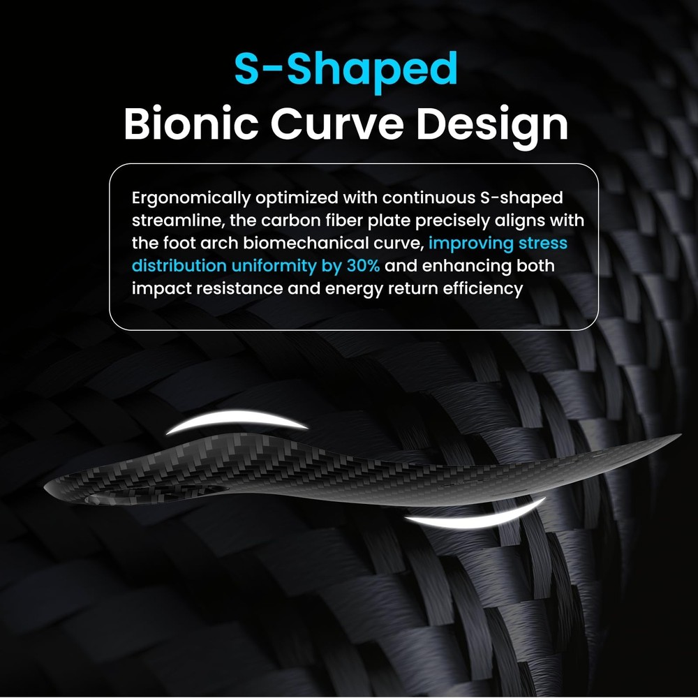 Bukihome Carbon Fiber Insoles -(1 Pair) High Arch & Rigid Support - Extra Energy Return - Non-Cleated Shoes - Running, Hiking - Injury Prevention - Volleyball, Basketball, Racquet Sports - 2XL Product Details Color: Lake Blue Size: (30CM) 10-11 M | 12-13 W Brand: Bukihome MPN: Does not apply UPC: Does not apply EAN: Does not apply Brand: Bukihome Color: Lake Blue Product Benefits: Foot Pain Use for: Foot Material: Foam Package Dimensions : 12.32 x 4.49 x 2.05 inches; 9.17 ounces Date First Available : November 22, 2024 Manufacturer : Bukihome Best Sellers Rank: #396,250 in Health & Household (See Top 100 in Health & Household) #3,686 in Shoe Insoles #3,686 in Shoe Insoles Customer Reviews: 3.7 3.7 out of 5 stars 32 ratings Aero-grade carbon fiber technologyThis carbon fiber insole is made from full-length aerospace-grade carbon fiber, providing superior support and protection for your feet with its extreme strength and lightweight design. Whether for everyday use or sports scenarios, this insole will help you run faster, jump higher, and land more securely, while effectively reducing the risk of sports injuries and strengthening your every step. S-curve designIn the important arch support area, the carbon fiber adopts an S-curve design, which is more in line with the human foot structure and has 21.7% higher resilience than standard carbon fiber insoles, which can provide more energy return for every run or jump. Faster recovery and injury preventionCarbon fiber insoles have scientifically proven injury protection and recovery features. Using Carbon Fiber reduces the risk of and aids in the recovery from anterior and posterior cruciate ligament injuries, meniscus injuries, ankle sprains, plantar fasciitis, bursitis, Achilles tendonitis, heel pain, osteoarthritis tibial stress syndrome, stress fractures, and turf toe. 18 months after-sales serviceIn addition to the carbon fiber part, the insole is also made of high-density and high-resilience PU material, which further enhances the performance of the insole in various sports. The average service life of the Bukihome insole is 18 months, during this period, if you have any dissatisfaction or questions about the product, please contact us via email, and we will surely provide you with a satisfactory solution! Suitable for all types of shoesOur products are suitable for all kinds of daily shoes and sports shoes except cleats, and our insoles can be cut to fit different shoe shapes and sizes.