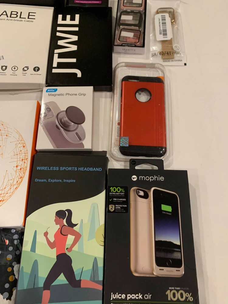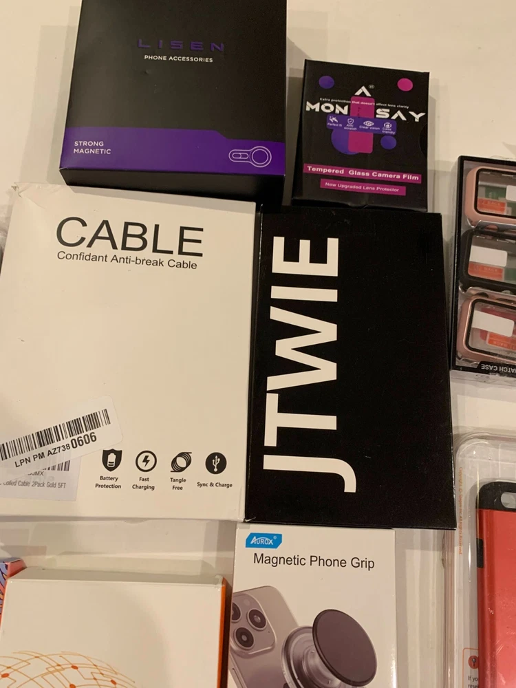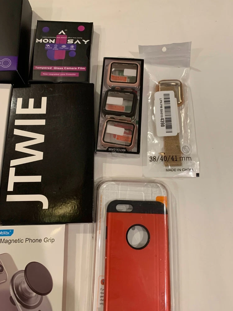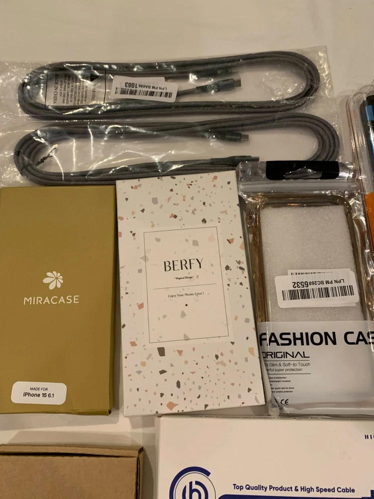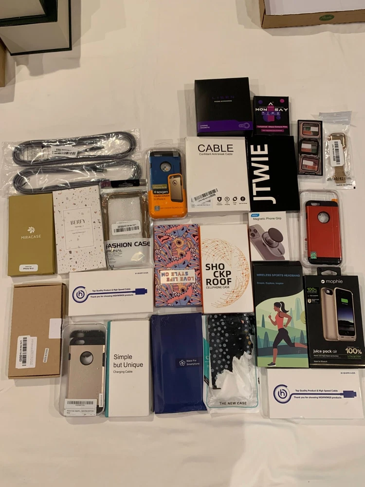 This bulk lot of cell phone accessories is a mixed bag of cables, chargers, cases, screen protectors, and a variety of other accessories that could be used with a cell phone. All items are new and in their original packaging -- ready for resale by a reseller or dealer. These items range in retail value from $7.95 - 29.95. These items will work / fit a wide variety of phones: Samsung, Android, Apple and many more; they are designed to work with/fit recent phone releases with the past couple years, many for just 2024 models only. All our bulk wholesale lots are new or like new items, unless otherwise described. These lots are designed to combine numerous items together for a discounted wholesale price, so that the retail value is at least double+++ the Buy It Now price. These bulk wholesale lots are ideal for resellers and dealers; or they can make a great long-term supply of consumable products or to give as a fun Mystery Gift or Secret Santa gift. Due to the nature of these bulk wholesale lots, some items may have some minor packaging damage, minor surface flaws, or they may be in perfect condition. These lots are not returnable or refundable, so please read the description and view the photos carefully in detail before ordering.