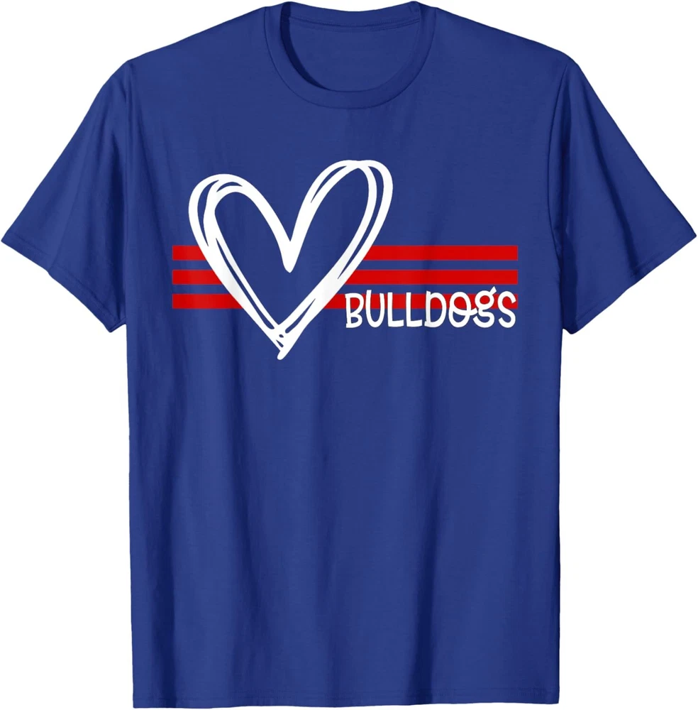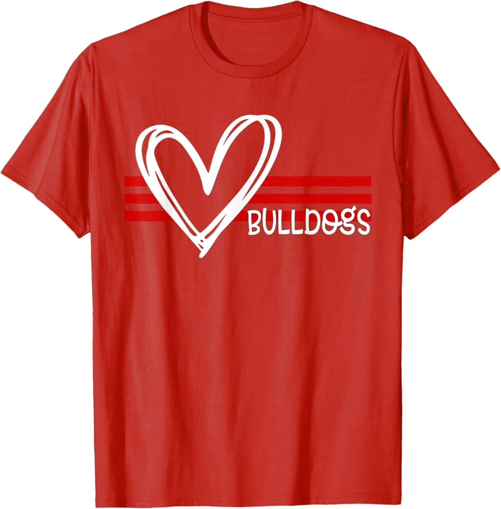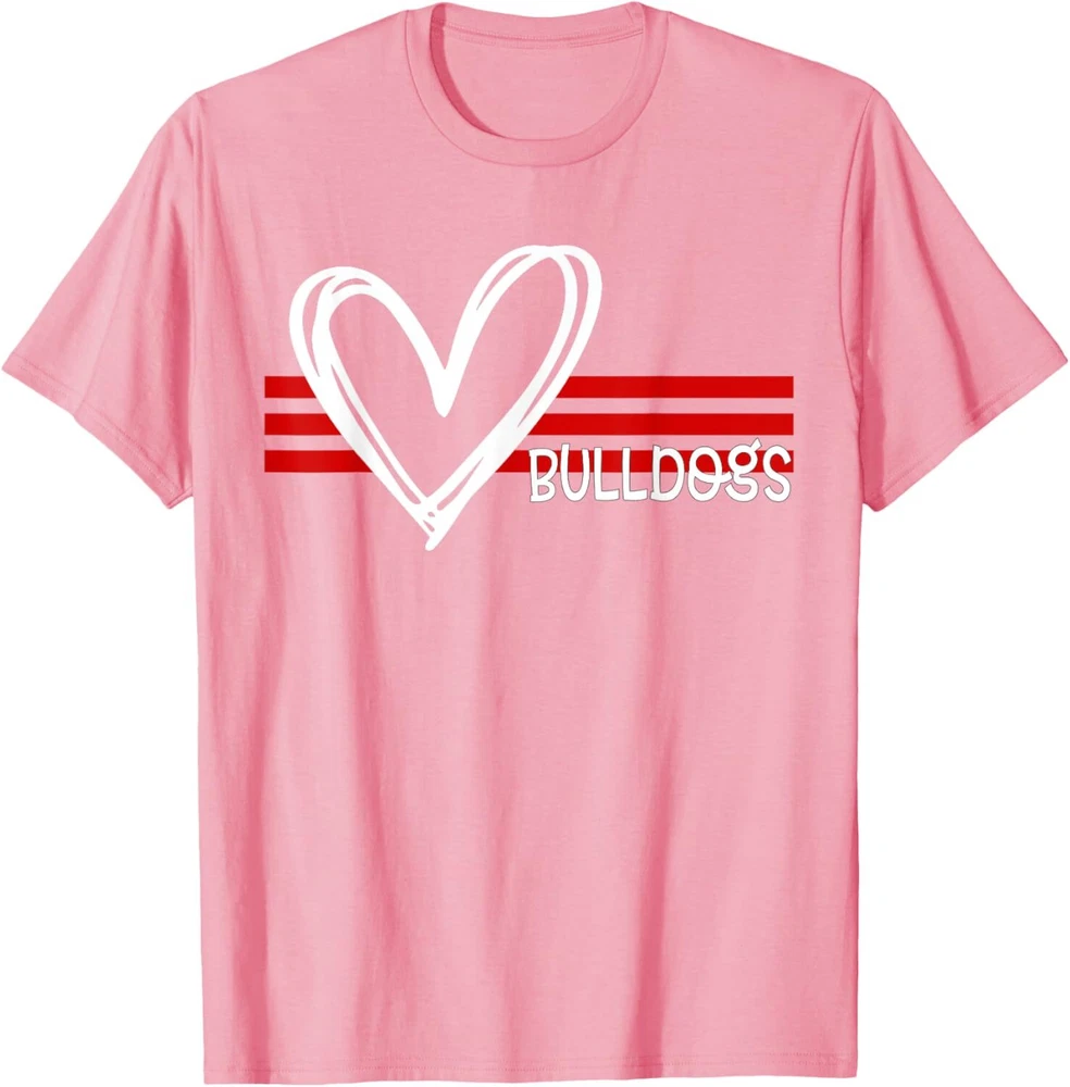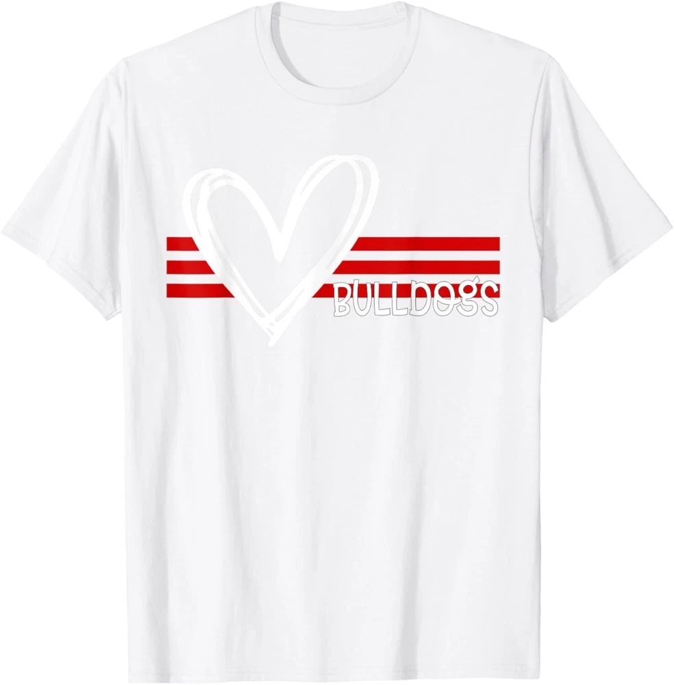 Bulldogs Team Pride School Spirit White Red Heart Shirt T-Shirt Hoodie