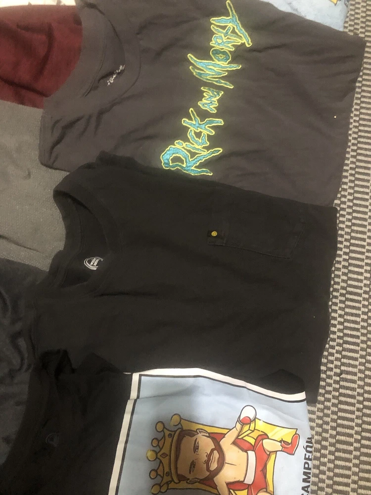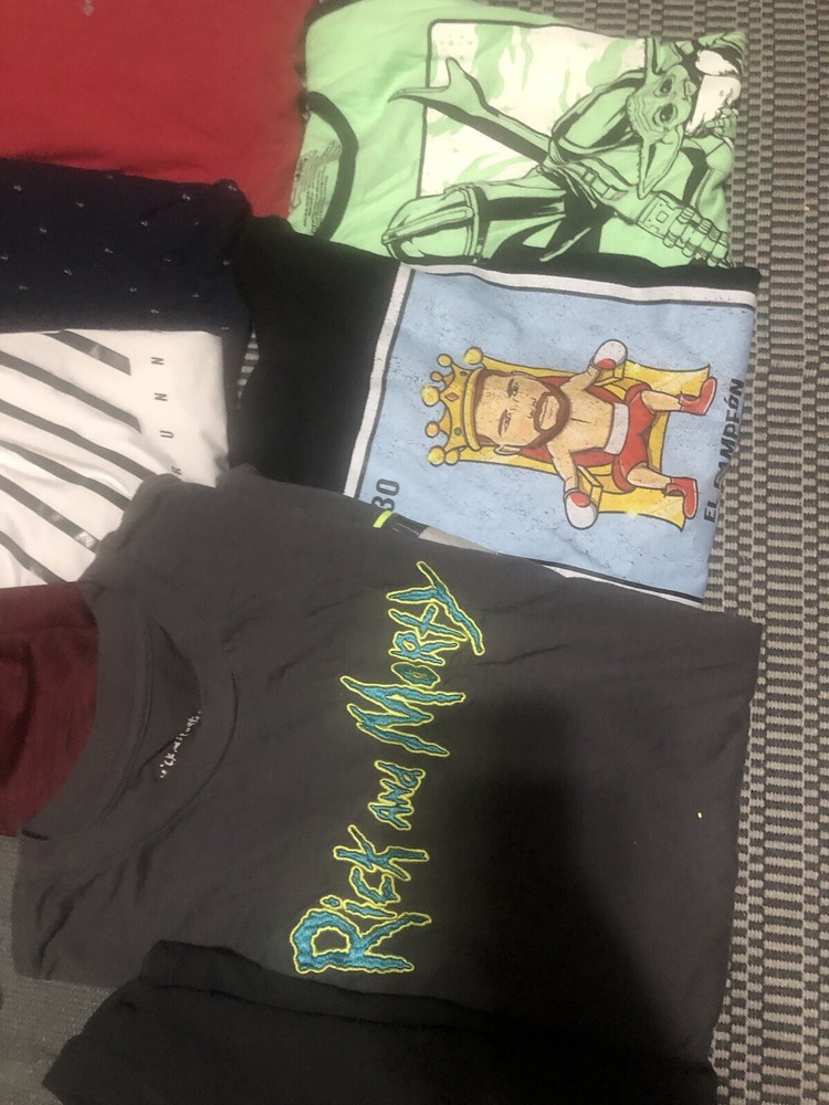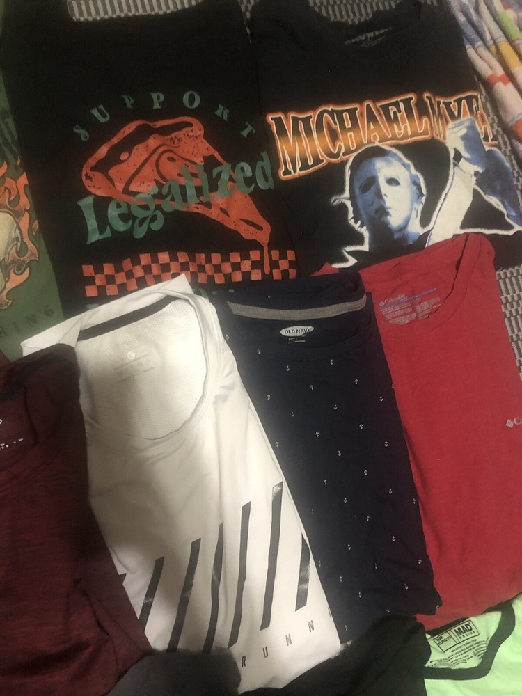 Great condition, pet free smoke free. Last row is XL. Elevate your wardrobe with a diverse bundle of men's graphic tees and Dri-Fit shirts, available in sizes Large and XL. Each shirt is designed to offer a comfortable classic fit, with a crew neckline and short sleeves, perfect for any casual occasion. The assortment includes shirts that showcase a variety of themes, from retro and preppy to hippie and grunge, ensuring you'll find a shirt that matches your style and mood. Crafted from a blend of cotton, polyester, and cotton blend materials, these shirts are machine washable for easy care. The multicolor graphic patterns add a touch of personality to each piece, making them ideal for those who appreciate art and unique design. Whether you're hitting the outdoors or just lounging around, these shirts are made for all seasons and are sure to become go-to staples in your collection.