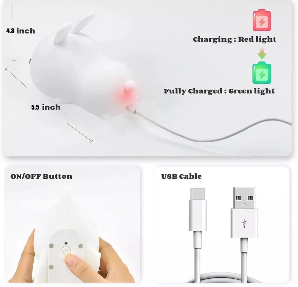 Bunny Night Light USB Rechargeable 16-Color LED Kids' Gifts Bunny-Tap Control