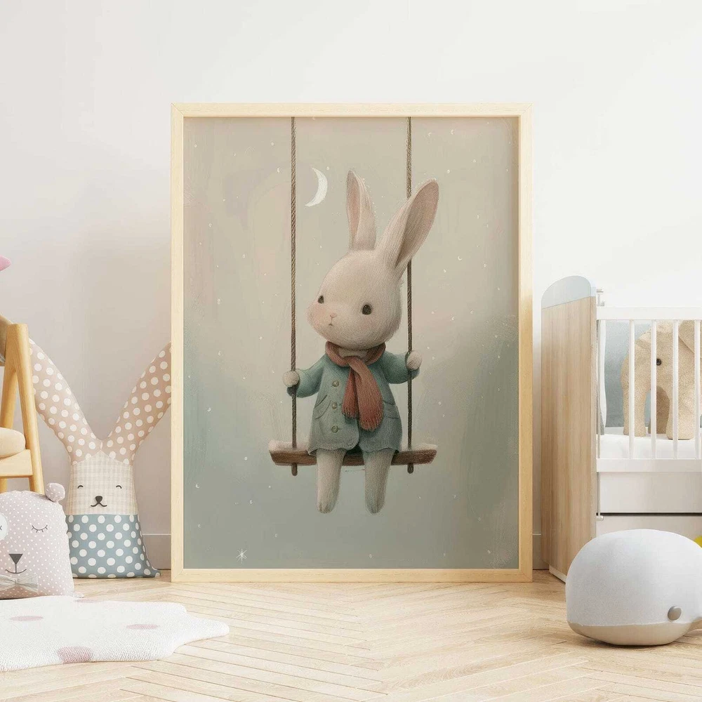 Bunny Nursery Art Animal Art For Childrens Room Cute Bunny Print Rabbit Painting Whimsical Bunny Wall Decor Nursery Art Material: Premium luster photo paper Print type: Inkjet printing One side printed + The finish provides the highest possible resolution and color saturation + Lasts up to 200 years in color and 400 years in black-and-white + Printed on high-quality resin-coated photo base paper medium + Posters can be hung with double-sided tape, tacks, or framed + Hand washing with a gentle cry cloth is recommended for extended durability I will hand select the best choice of paper for your chosen design to ensure top quality results for a beautiful, bright and luxurious print. All prints are sealed in cellophane slips for protection during transportation, and are shipped in a protective cardboard envelope.