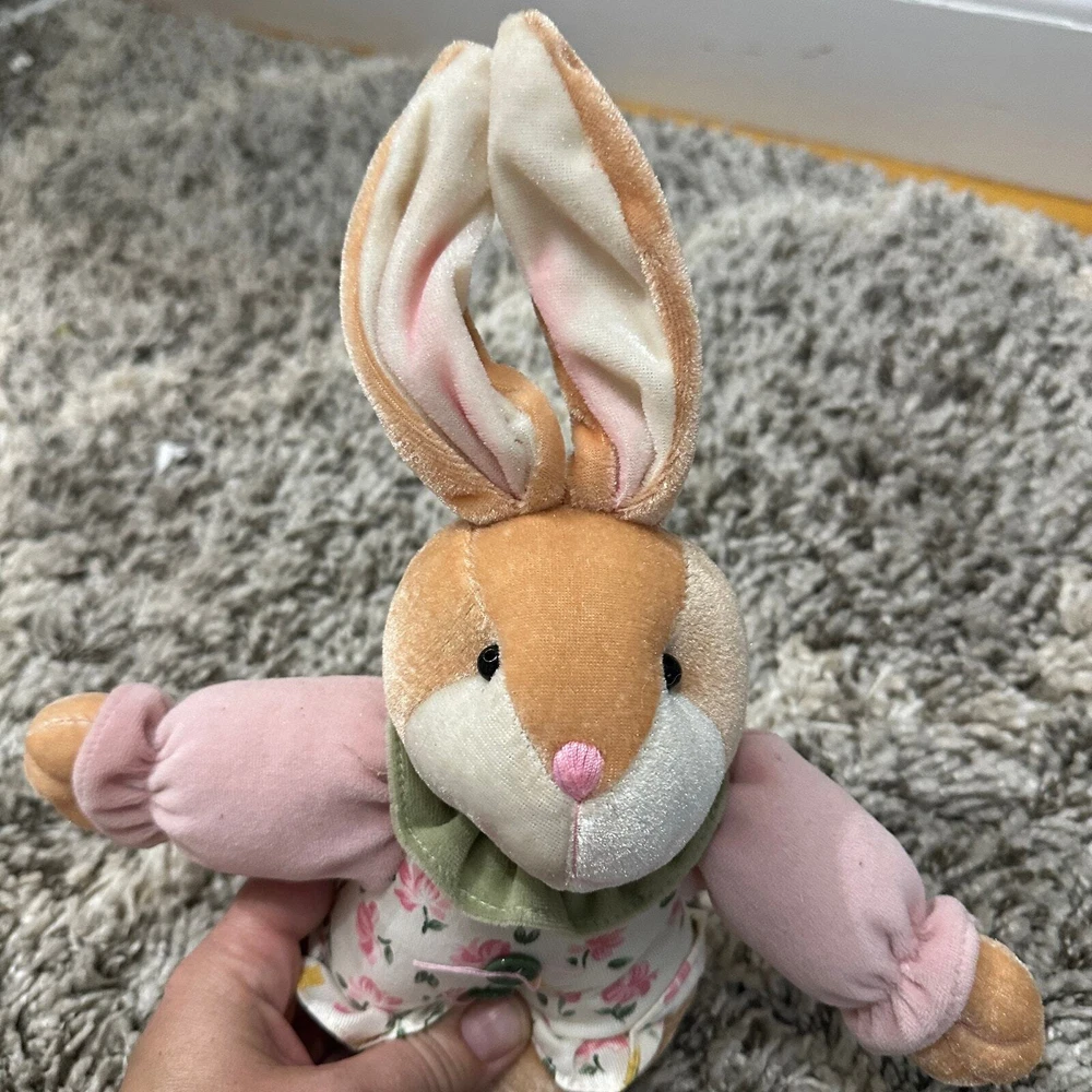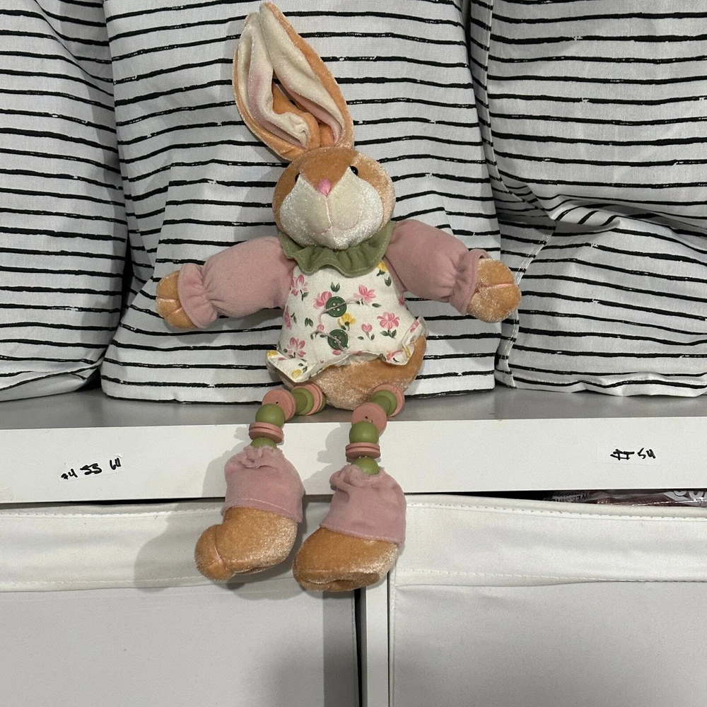 Bunny Rabbit Doll Shelf Sitter Easter Decor Toy Stuffed Animal Plush CUTE 20" This guy is so sweet! I don't think he is handmade--but there is no tag. Might need propping up to sit on a shelf. Wire in ears. Excellent condition, no flaws or notable wear. Lots of adorable details!