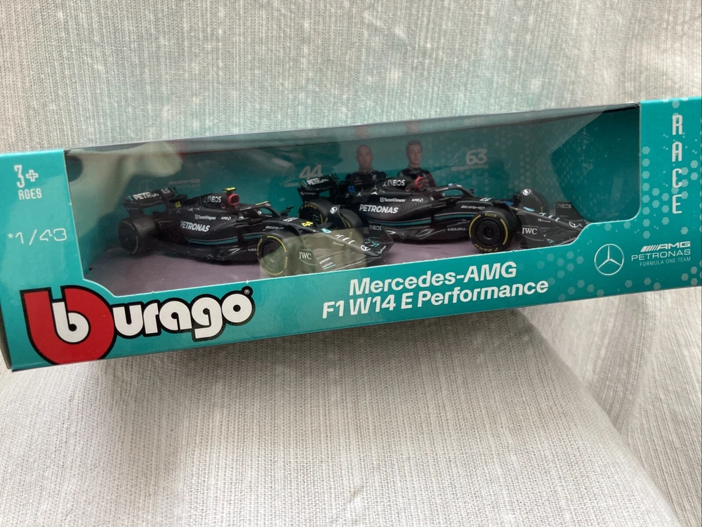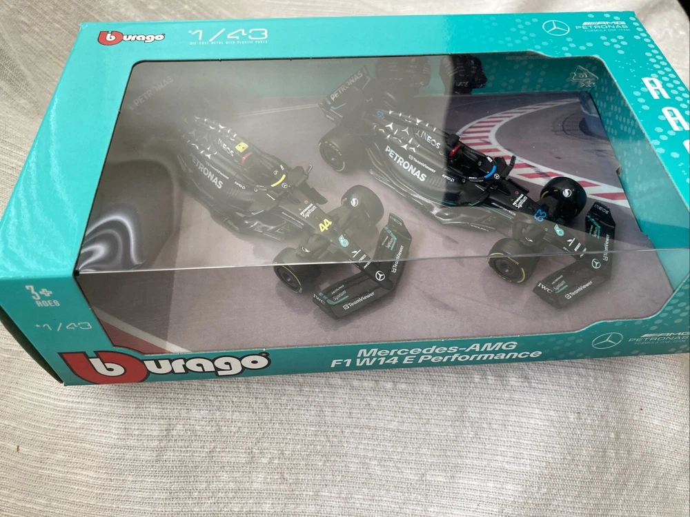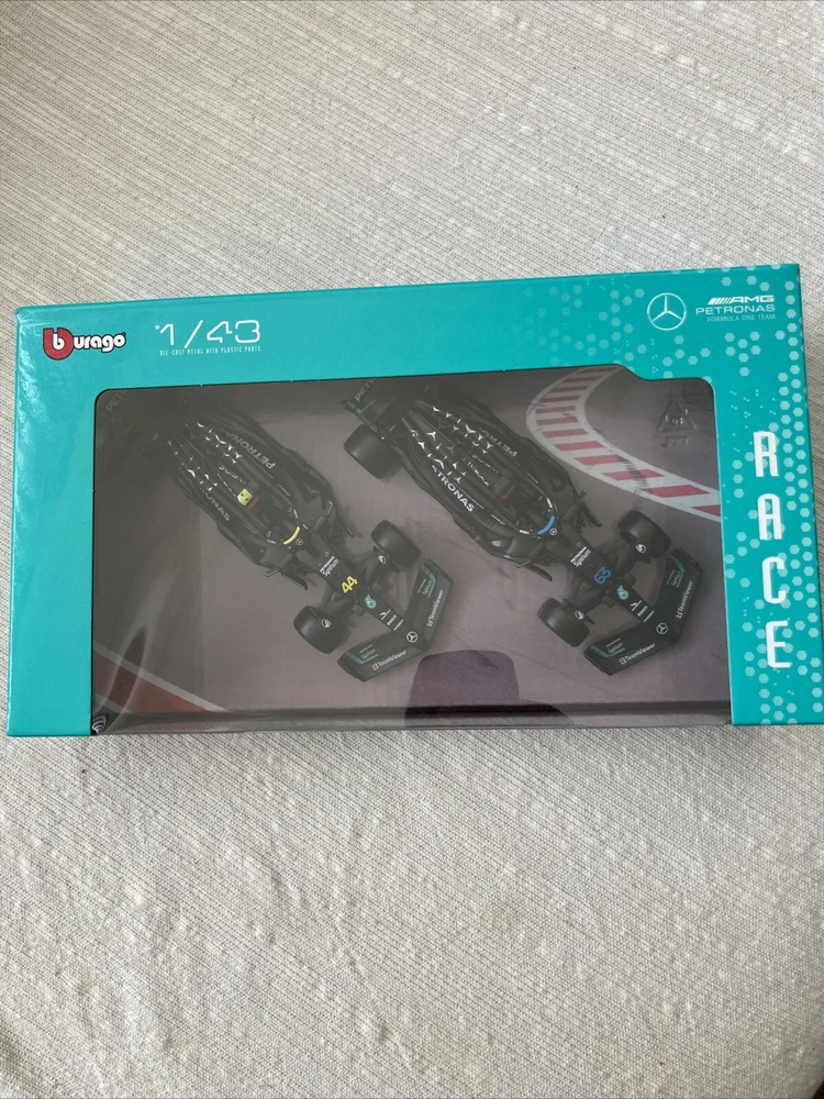 Experience the thrill of the world's fastest sport with this limited edition Burago 1:43 scale diecast model of the Mercedes-AMG W13 E Formula One car. Featuring the iconic team Petronas F1, this special edition model is a must-have for any F1 cars collector. The colorful multi-color design and intricate details make this model a standout addition to your collection. This unopened box is perfect for fans of all ages, with a recommended age range of 3+. The model is a perfect replica of the 2021 vehicle year, complete with features like Lewis Hamilton and George Russell. This Burago model is a great gift for boys and girls who love Formula One racing.