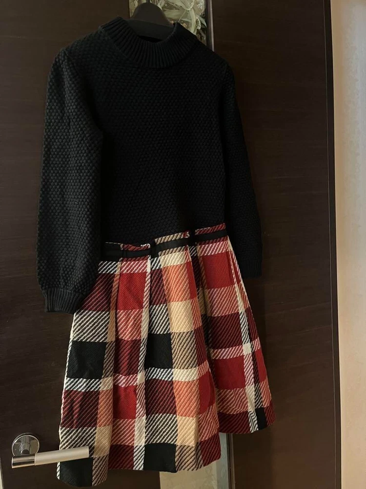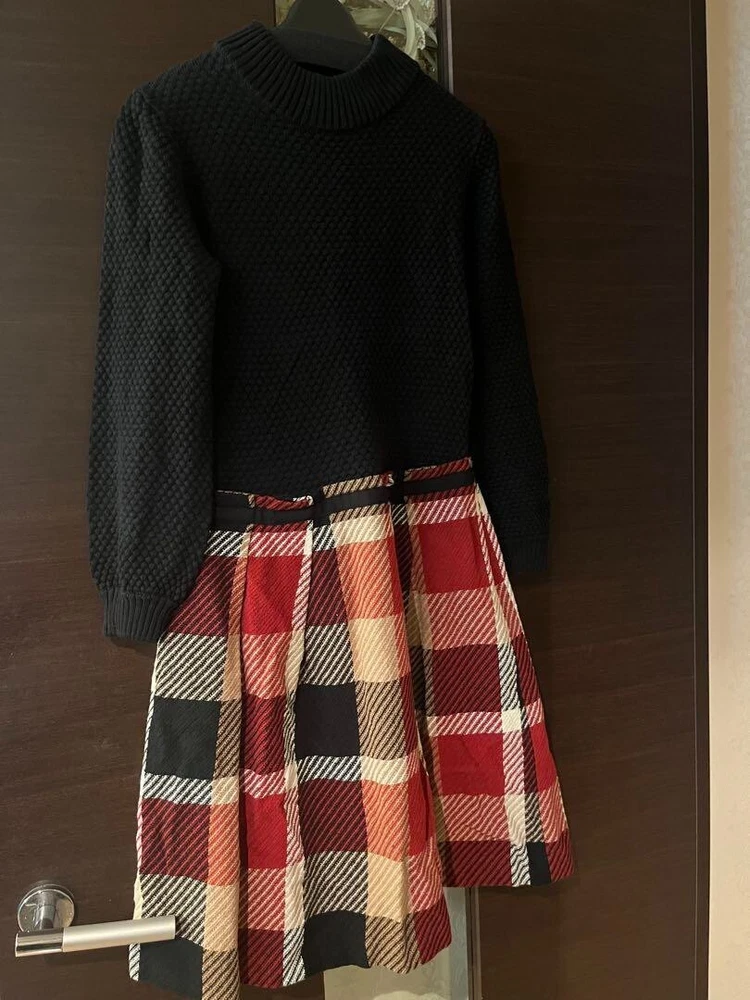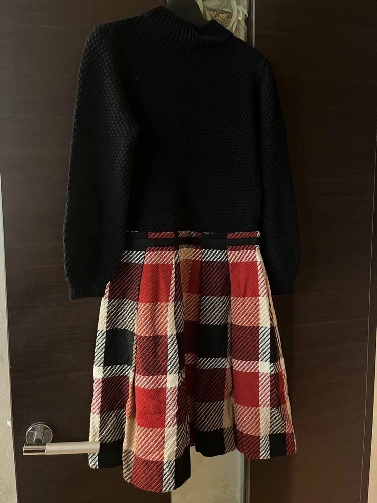 Burberry Blue Label Black Knit Red Check Skirt Docking Dress Women Size 38 Used