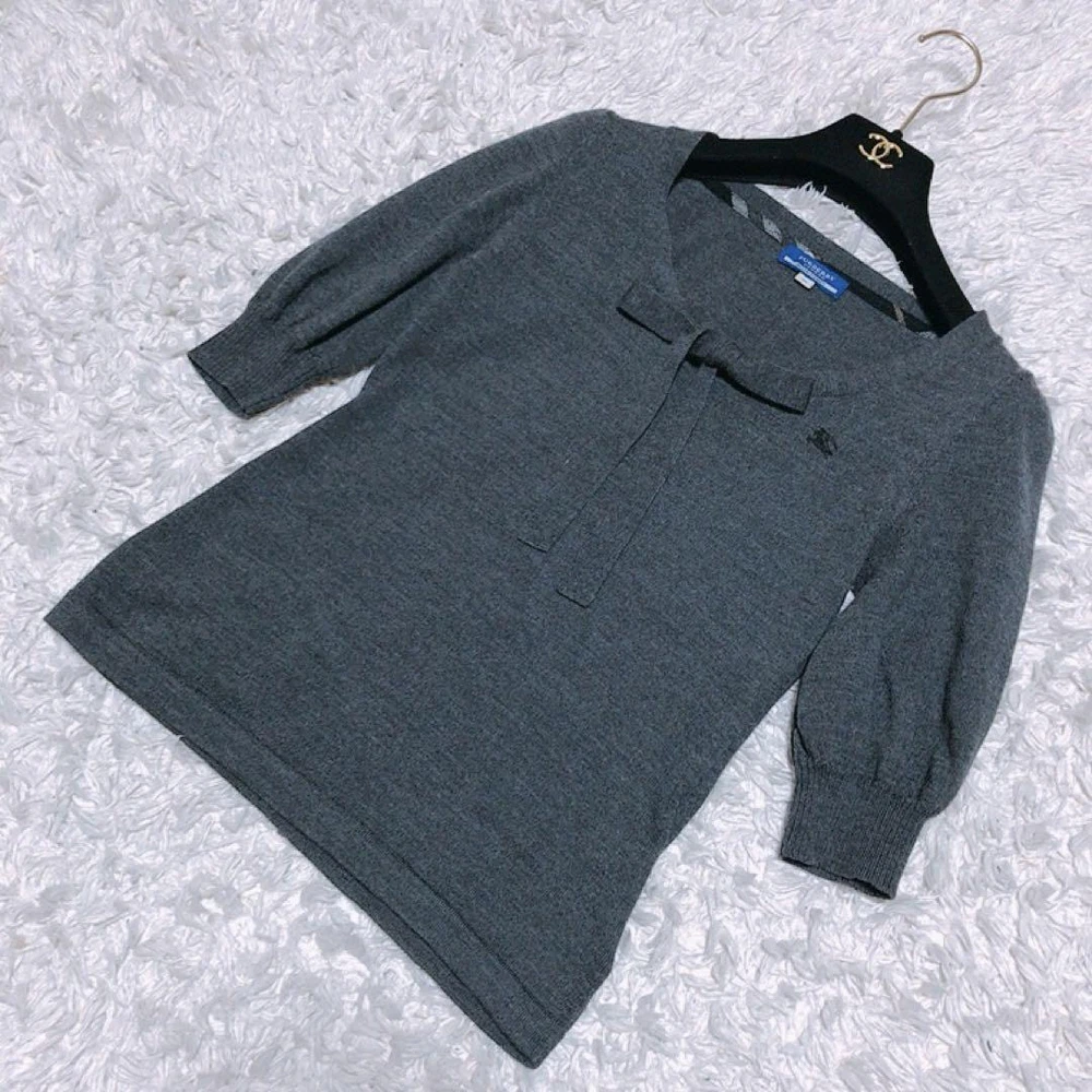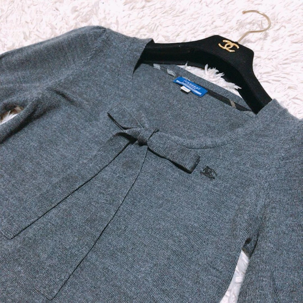Burberry Blue Label Gray Sweater with Bowtie Size M Wool 100% Key Features **BURBERRY BLUELABEL Sweater** - **Brand:** BURBERRY BLUELABEL - **Product Type:** Sweater - **Color:** Gray - **Size:** 38 (M) - **Material:** 100% Wool - **Measurements:** - Shoulder Width: 34 cm - Chest Width: 39 cm - Length: 53 cm - Sleeve Length: 34 cm - **Condition:** Gently used; please note that it has been stored at home. Buyers who are overly particular may want to reconsider. This stylish gray sweater features a chic bow tie detail, perfect for the autumn and winter seasons. Specifications Brand Burberry Blue Label Country Japan Product Description Item Title Burberry Bluelabel Sweater Gray Ribbon Bowtie Payment Supports managed payments Please pay within 5 days after auction is finished. About Us We are located in Japan. It's our pleasure to make you happy by proposing our recommend item. If you have any questions or request about items, please feel free to ask us. International Buyers - Please Note: -Import duties, taxes, and charges are not included in the item price or shipping charges. These charges are the buyer's responsibility. -Please check with your country's customs office to determine what these additional costs will be prior to bidding/buying. -These charges are normally collected by the delivering freight (shipping) company or when you pick the item up - do not confuse them for additional shipping charges. -We do not mark merchandise values below value or mark items as - gifts - The US and International government regulations prohibit such behavior. Thank you for your understanding.
