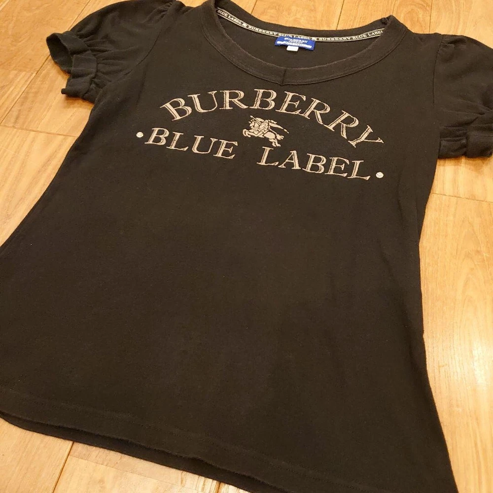 Burberry Blue Label T-shirt Black Short sleeve Cotton Logo Women Size 38 Used