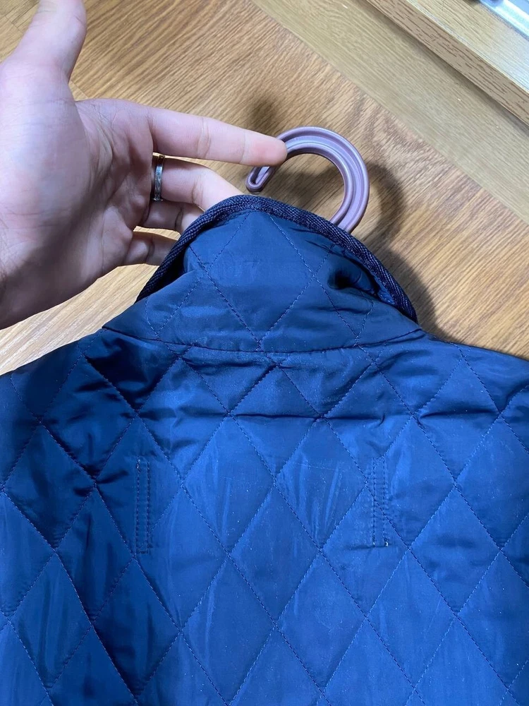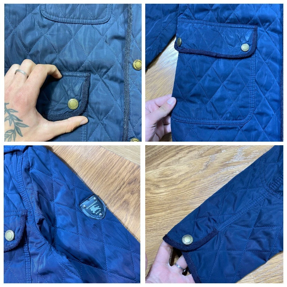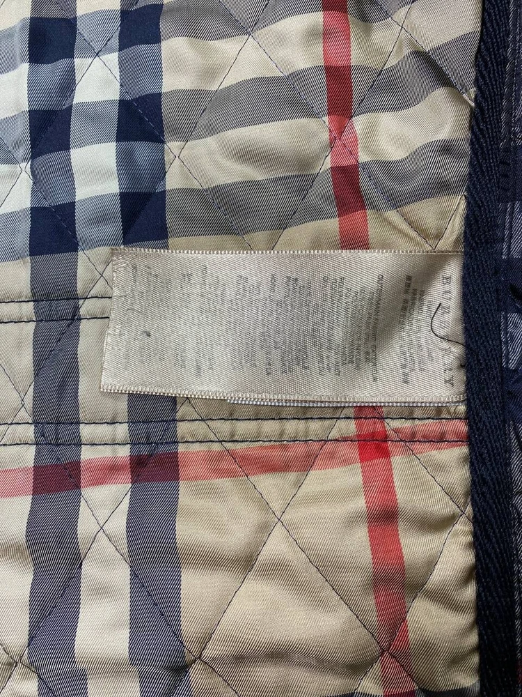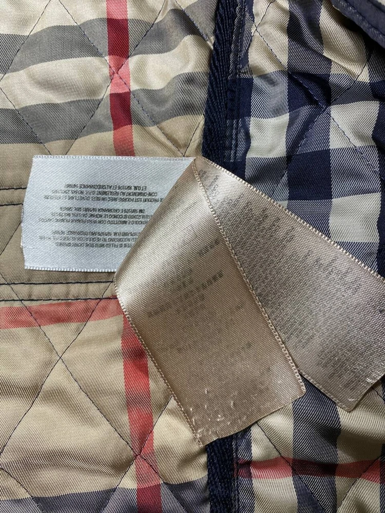 Size: S Color: Blue Outer Shell Material: Please view photo Size Type: Regular Type: Jacket Department: Men Brand: Burberry Accents: Quilted Style: Quilted Closure: Zip