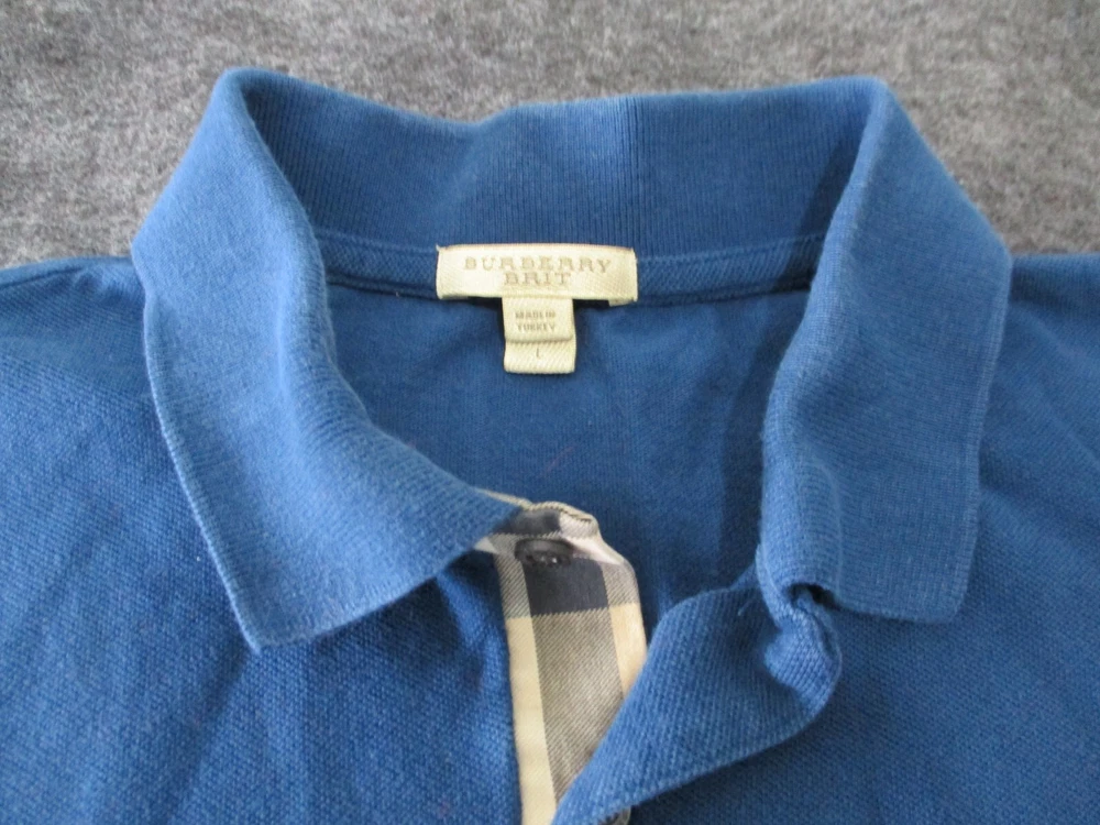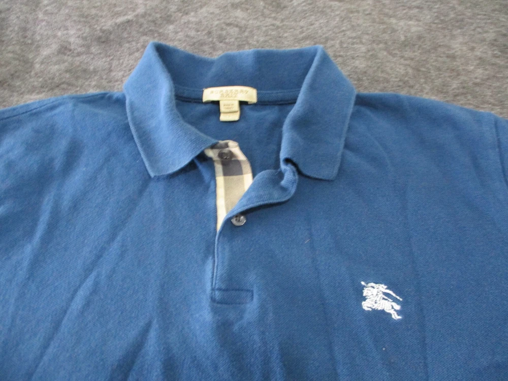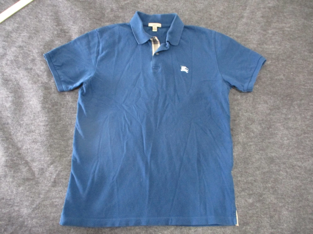 Up for sale is a - Burberry Brit Polo Shirt Mens Cotton Golf Collared Short sleeve Nova Check Size: Large Color: NAVY BLUE Shirt is in Good Used condition Nice logo I will ship this item out via USPS Ground Advantage 2-3 Day Mail with a tracking number for confirmation I ship items out EVERY DAY so EXPECT a QUICK delivery! Please feel free to ask any questions you may have I answer most questions instantly!