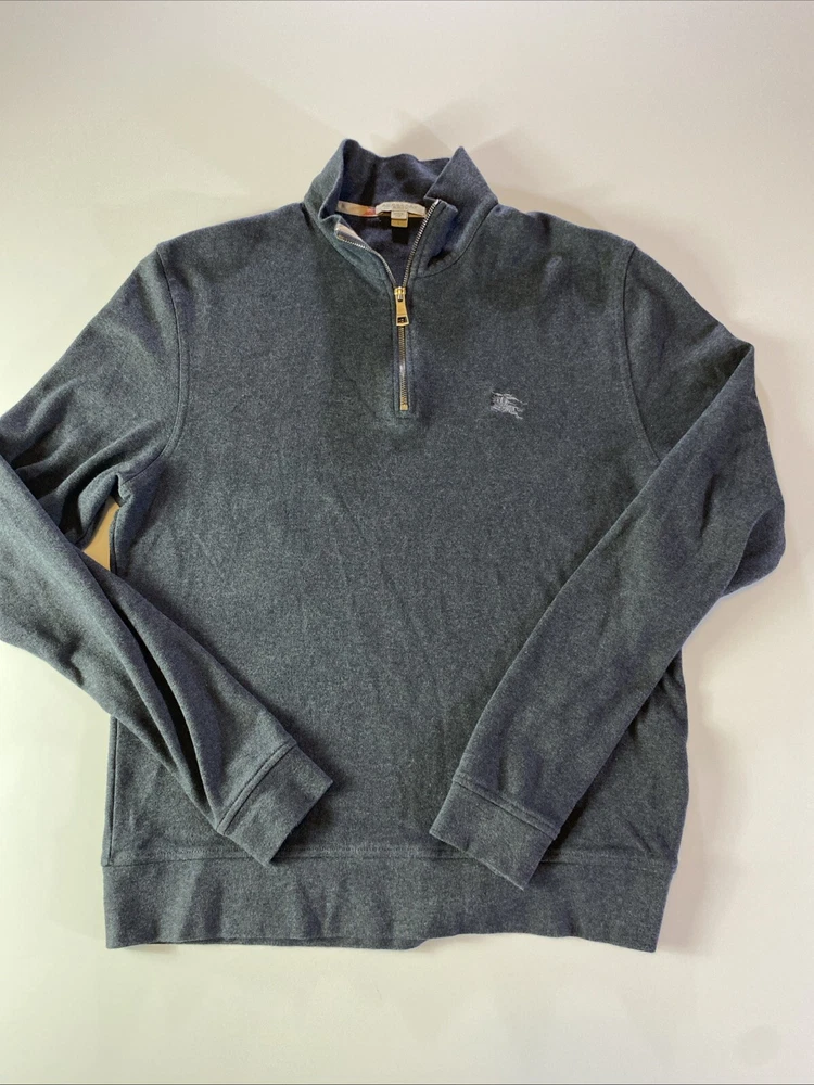 Elevate your wardrobe with this designer Burberry Brit sweatshirt. Crafted from 100% Pima cotton with a tight-knit pattern, this pullover features a high neck and long sleeves with a quarter zip for style and comfort. The black color and embroidered logo accents add a touch of sophistication, making it perfect for any occasion, from casual outings to business meetings to outdoor activities. Machine washable for easy care, this regular-fit sweatshirt is available in size L. Whether you're hiking in the mountains or attending a party in the city, this Burberry sweatshirt is a must-have addition to your wardrobe.