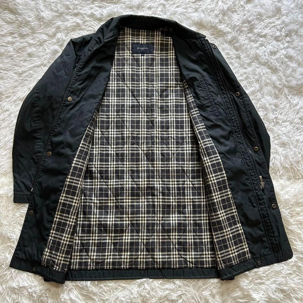 Fabric Type: NA Theme: NA Brand: Burberry Insulation Material: NA Department: Men Chest Size: 48 in Warmth Weight: NA Vintage: No Product Line: NA Closure: Button, Zip Size Type: Regular gtin13: Does not apply Personalize: No Style: Quilted Pattern: Check Accents: Button, Logo Outer Shell Material: Polyester Performance/Activity: Walking UPC: Does not apply Jacket/Coat Length: 33.4 in Fit: Slim Occasion: Business, Casual, Travel Garment Care: NA Features: Collared MPN: NA Country/Region of Manufacture: Japan Model: NA Type: Jacket Color: Black Season: Fall, Spring, Winter Handmade: No Size: M Lining Material: NA Collar Style: NA