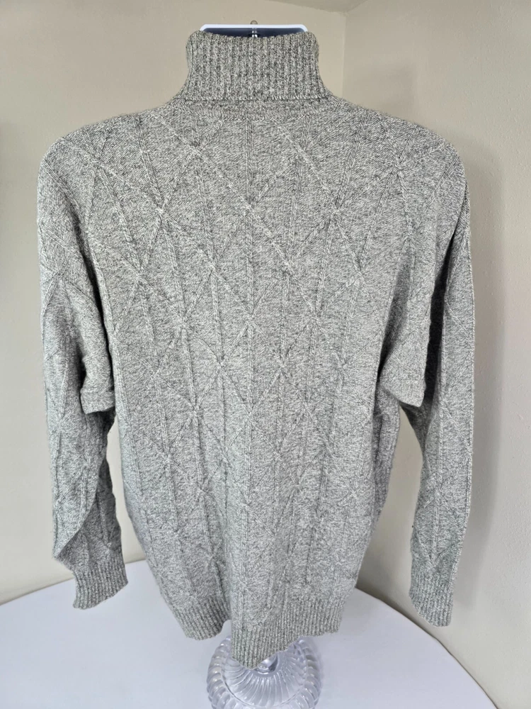 Available for sale is a beautiful pre-owned Men's BURBERRY 100% Cashmere Cable Knit Turtleneck Sweater in Size L which can also fit a slim XL (check below measurements). This luxury sweater is in a beautiful light gray melange color and features an elegant cable knit design throughout making it a versatile piece. Made in Scotland by Burberry, this sweater is made of very high quality cashmere and is very warm. Other than a tiny bit of yellowing on part of the turtleneck which isn't visible (check photos), it is in decent condition with no holes, tears, pulls, and little to no pilling. The sweater is a Mid-weight 2-3 ply knit. Please check the measurements below. Measurements: Shoulder: 23" Chest: 22" Length: 29" Sleeve: 22" from armpit to cuff Payment: We Accept PayPal, and eBay Payments which accepts most debit & credit cards and linked bank accounts. Shipping: We ship within 24-48 hours and we generally use USPS Ground Advantage or USPS Priority Mail for most of our shipments. We ship to al 50 states and we also ship Internationally as well, using eBay's International shipping service. We also offer expedited International shipping for an additional cost as well.