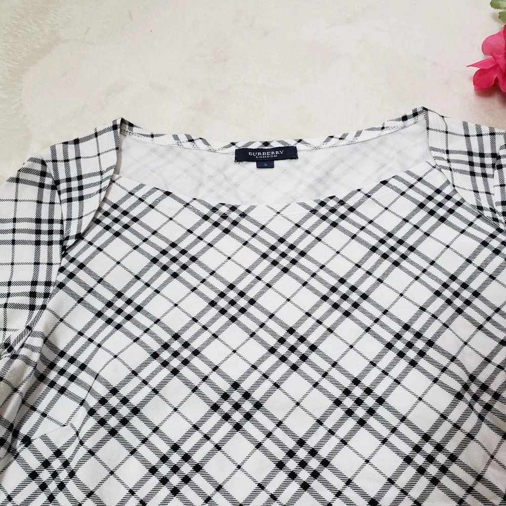Burberry London Check Micro Nova Square Cut T-Shirt Size M - Excellent Condition Key Features **BURBERRY LONDON Square Cut Long Sleeve T-Shirt** - **Brand:** Burberry London - **Model:** Size 2 - **Type:** Long Sleeve T-Shirt - **Color:** White with Black and Gray Check - **Size Measurements:** - Width: 42 cm - Shoulder Width: 37.5 cm - Sleeve Length: 44 cm - Length: 54 cm - **Condition:** - Gently used, in excellent condition with no noticeable scratches or stains. - Well cared for, but please note it is a pre-owned item. - Minor measurement discrepancies may exist due to amateur measuring. Please be aware that returns are not accepted for color or size discrepancies. If you have any questions, feel free to ask before purchasing. Specifications Brand Burberry London Country Japan Product Description Item Title Burberry London Check Micro Nova Cut And Sew Payment Supports managed payments Please pay within 5 days after auction is finished. About Us We are located in Japan. It's our pleasure to make you happy by proposing our recommend item. If you have any questions or request about items, please feel free to ask us. International Buyers - Please Note: -Import duties, taxes, and charges are not included in the item price or shipping charges. These charges are the buyer's responsibility. -Please check with your country's customs office to determine what these additional costs will be prior to bidding/buying. -These charges are normally collected by the delivering freight (shipping) company or when you pick the item up - do not confuse them for additional shipping charges. -We do not mark merchandise values below value or mark items as - gifts - The US and International government regulations prohibit such behavior. Thank you for your understanding.