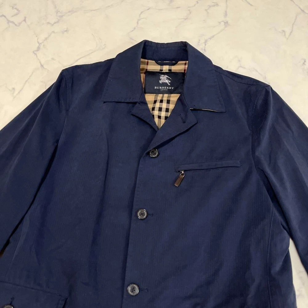 Burberry London Cotton Polyester Jacket Coat Navy Nova check Men Size L Used