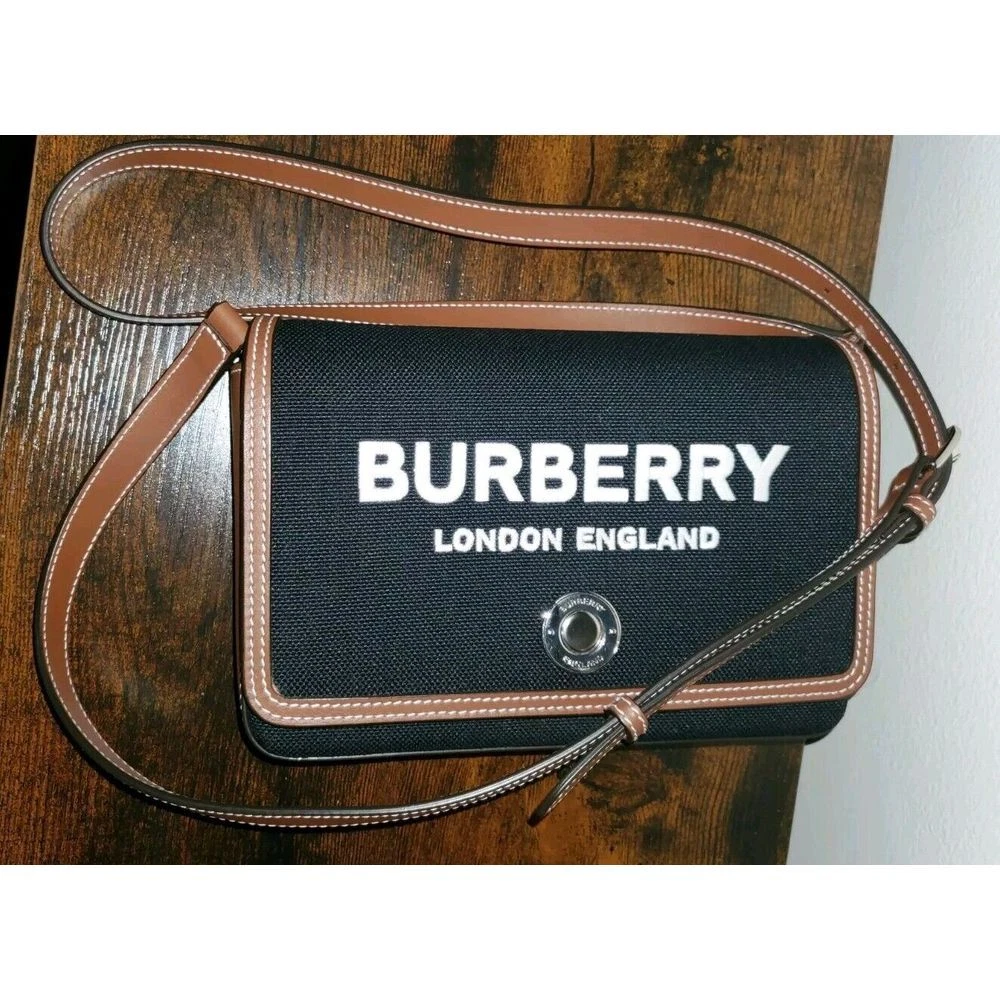 Elevate your everyday style with this sophisticated Burberry crossbody bag. Featuring the iconic Burberry logo on durable black canvas with luxurious brown leather trim. Perfect for both casual outings and formal occasions, this versatile bag adds a touch of British elegance to any ensemble. Ideal for shopping, brunches, or evening events where you want to travel light yet stay stylish. Keywords: Burberry bag, designer crossbody, canvas bag, leather trim, luxury handbag, black Burberry, British fashion, designer accessory, classic bag, Burberry London