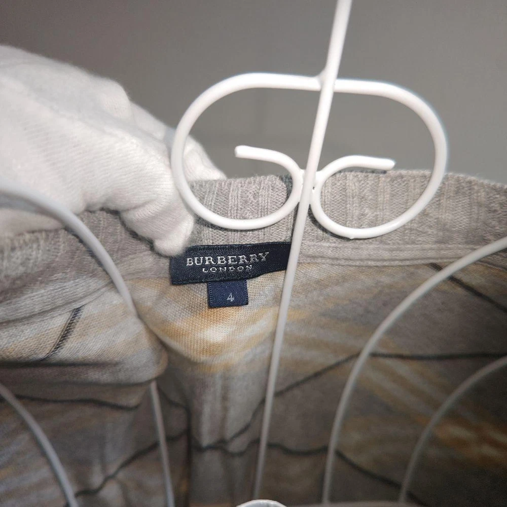 Burberry London Gray Black White Sweater Size 4 Stylish Design New Key Features **Burberry London Gray Sweater** - **Brand**: Burberry London - **Product Type**: Sweater - **Size**: 4 - **Color**: Gray - **Material**: - Main: 100% Cotton - Side Panels: 95% Cotton, 5% Polyurethane - Collar and Cuffs: 93% Cotton, 5% Nylon, 2% Polyurethane - **Dimensions**: - Shoulder Width: 39 cm - Chest Width: 49 cm - Length: 49 cm - Sleeve Length: 44 cm - **Condition**: - Gently used with no noticeable stains or fraying. Please understand this is a pre-owned item. - **Design**: Stylish and versatile, suitable for casual occasions. Features a V-neck and check pattern. - **Seasonality**: Ideal for spring, autumn, and winter Specifications Brand Burberry London Country Japan Product Description Item Title Stylish Burberry London Gray Black White Sweater Size 4 Payment Supports managed payments Please pay within 5 days after auction is finished. About Us We are located in Japan. It's our pleasure to make you happy by proposing our recommend item. If you have any questions or request about items, please feel free to ask us. International Buyers - Please Note: -Import duties, taxes, and charges are not included in the item price or shipping charges. These charges are the buyer's responsibility. -Please check with your country's customs office to determine what these additional costs will be prior to bidding/buying. -These charges are normally collected by the delivering freight (shipping) company or when you pick the item up - do not confuse them for additional shipping charges. -We do not mark merchandise values below value or mark items as - gifts - The US and International government regulations prohibit such behavior. Thank you for your understanding.