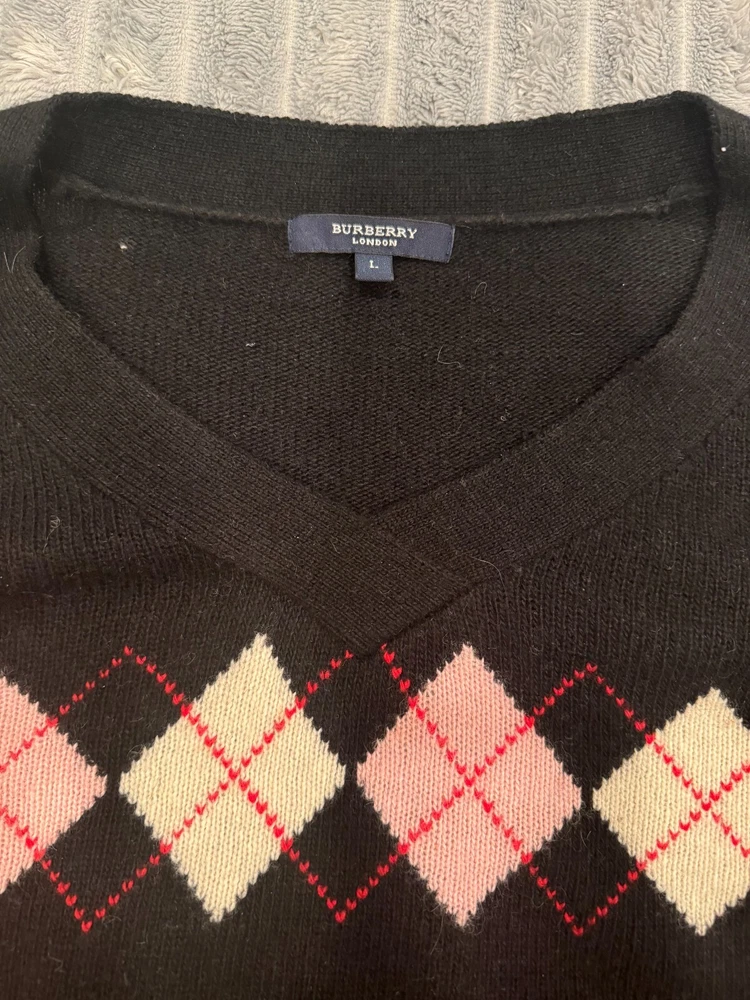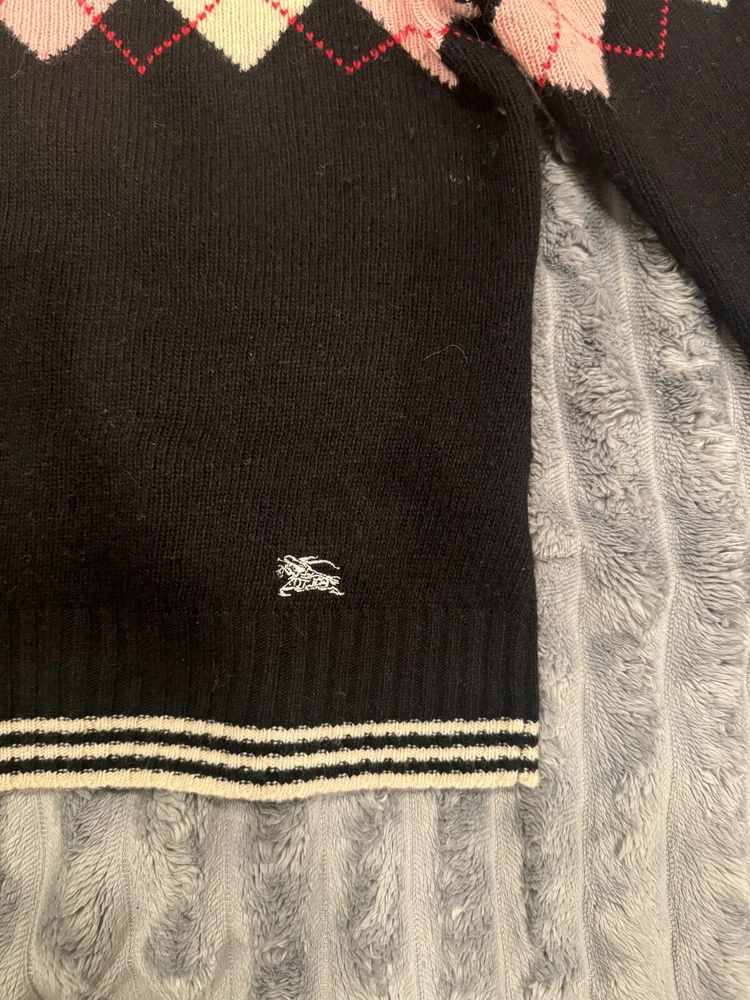 Burberry London Lambswool Pullover Printed V-Neck Knit Sweater