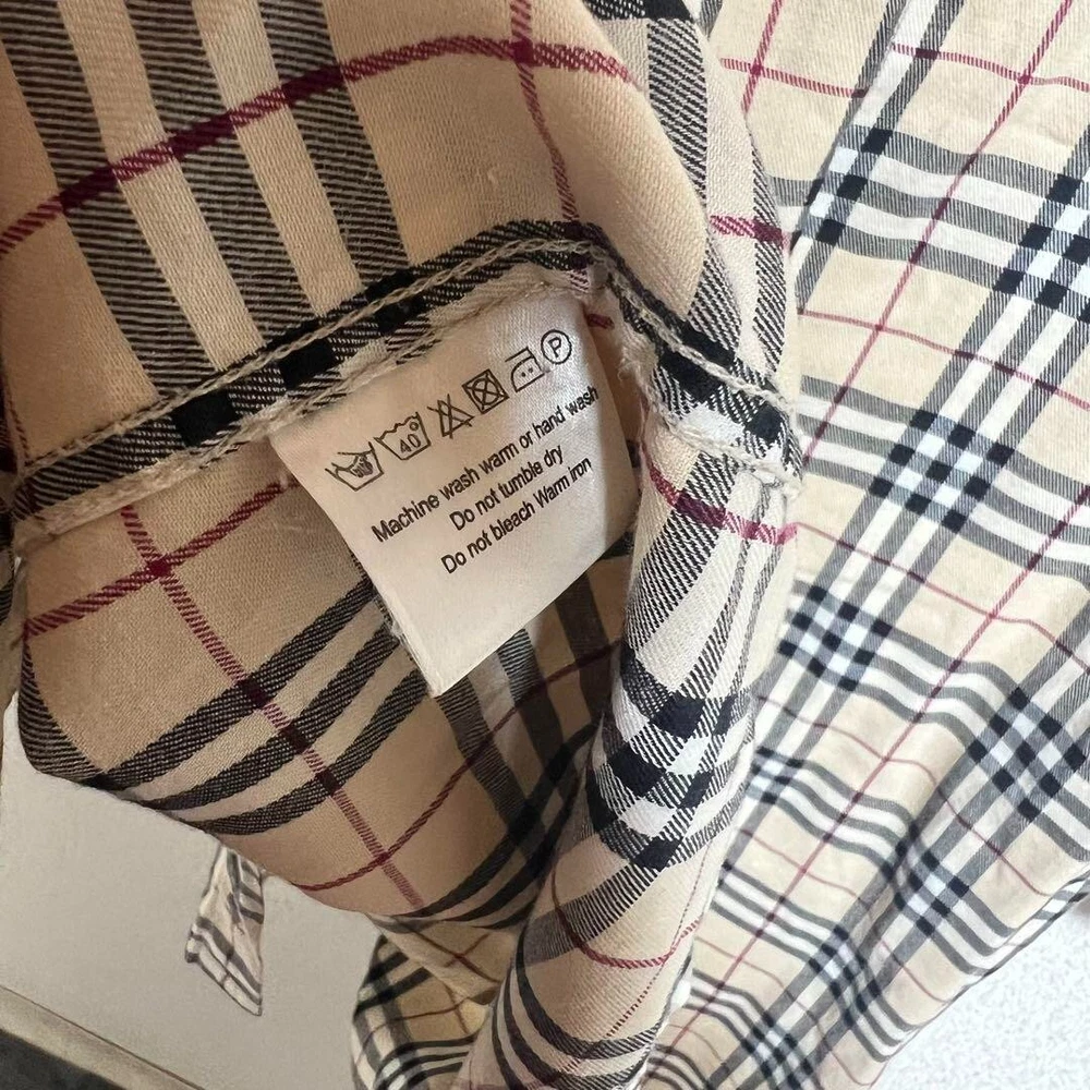 Burberry London Nova Check Long Sleeve Shirt Cotton Beige Men Size M Used
