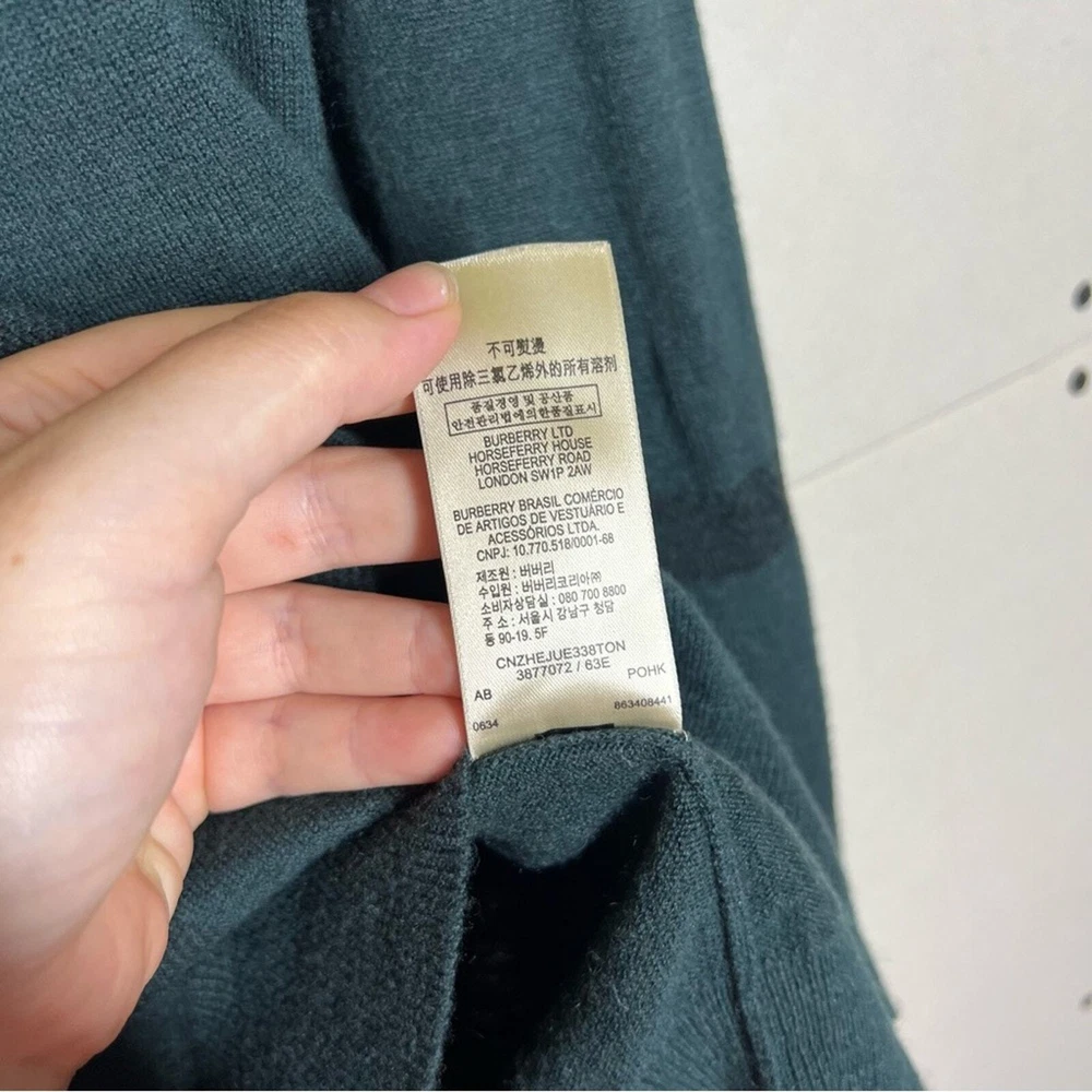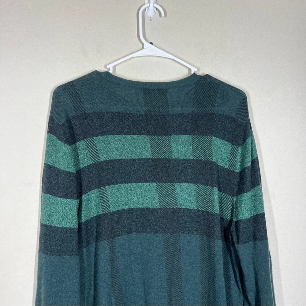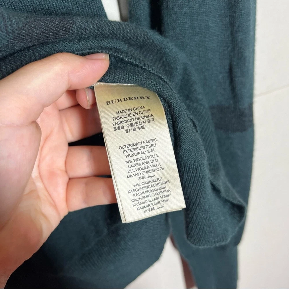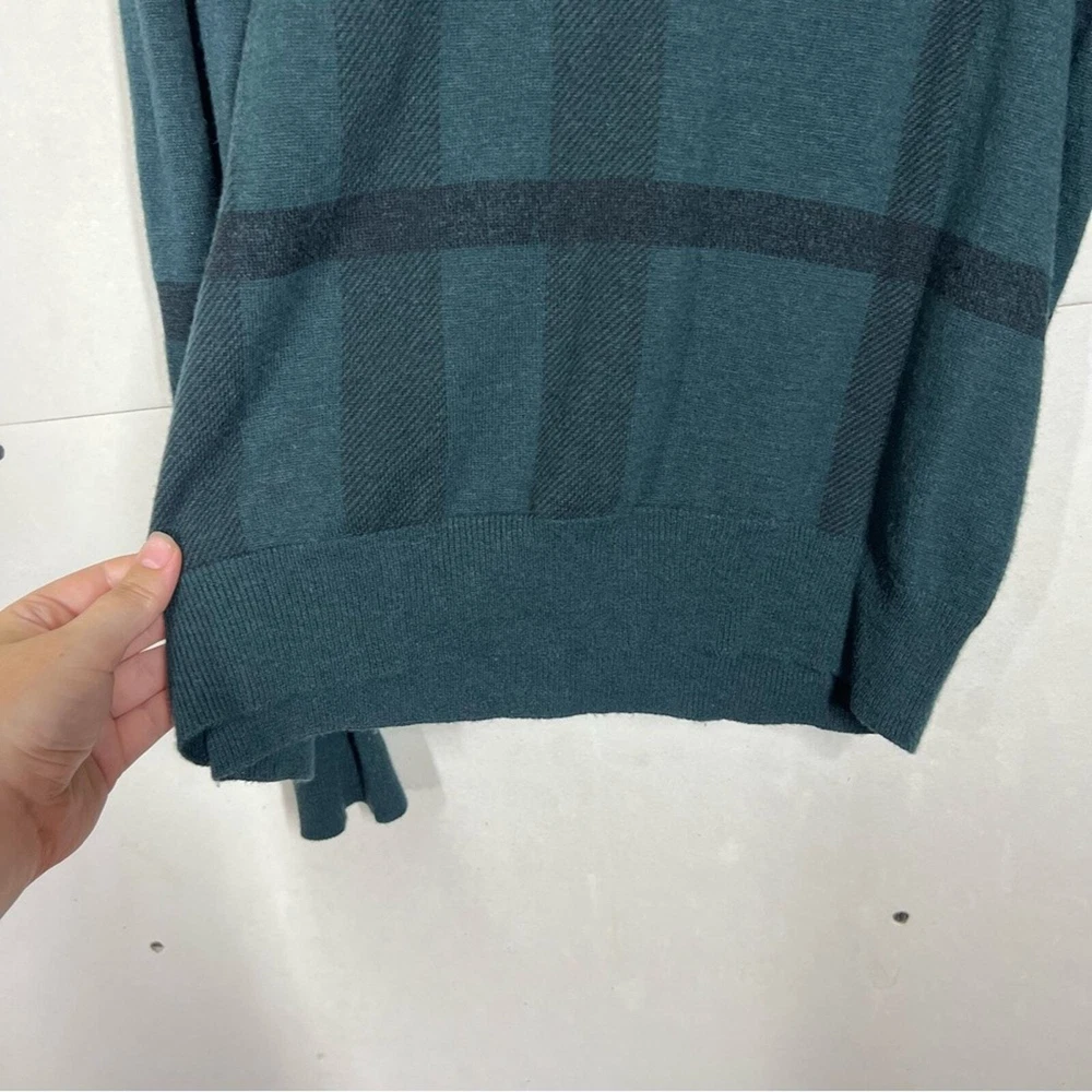 Burberry London Wool/Cashmere/Silk Blend Plaid Sweater Size Large Color: Green Wool, Cashmere, & Silk Blend Long sleeve Lightweight Crewneck No rips holes or stains Approximate measurements laying flat Chest 20.5” Length 29”