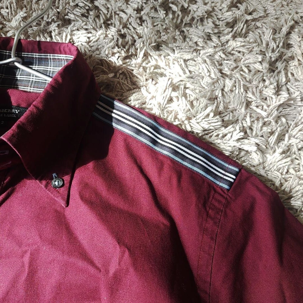 Burberry Long sleeve Shirt Bordeaux Nova Check Logo Cotton Men Size 2 Used
