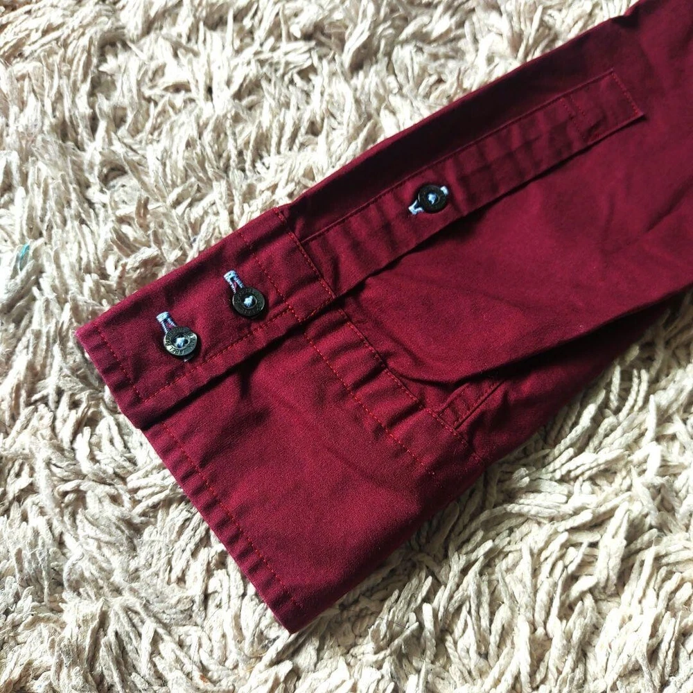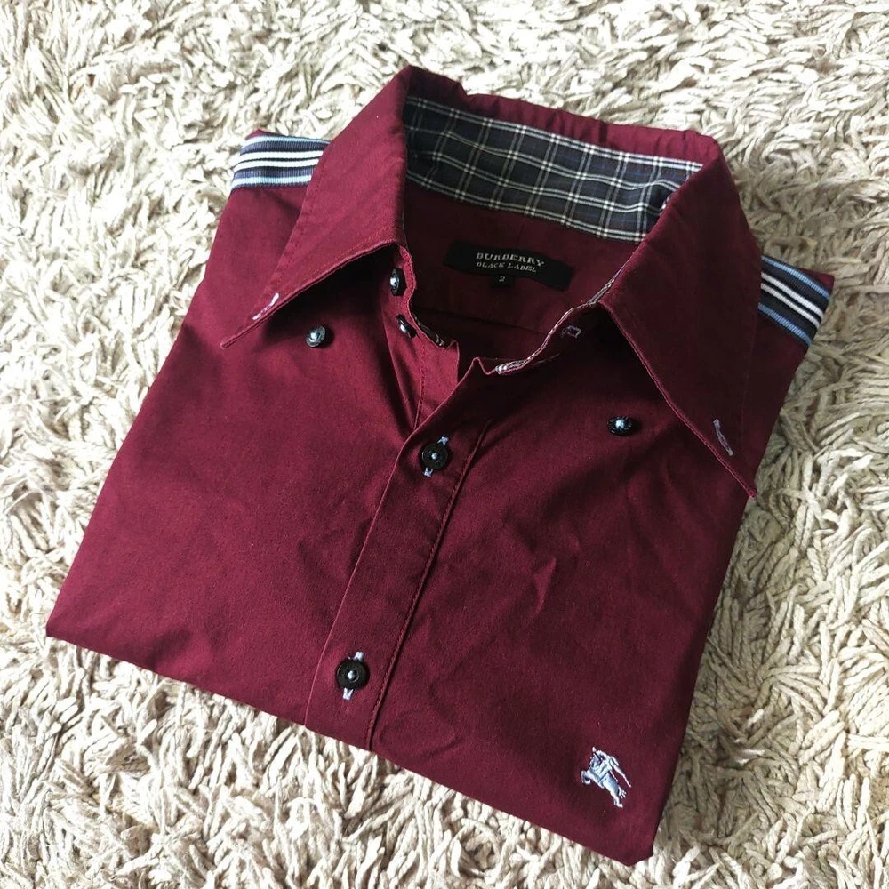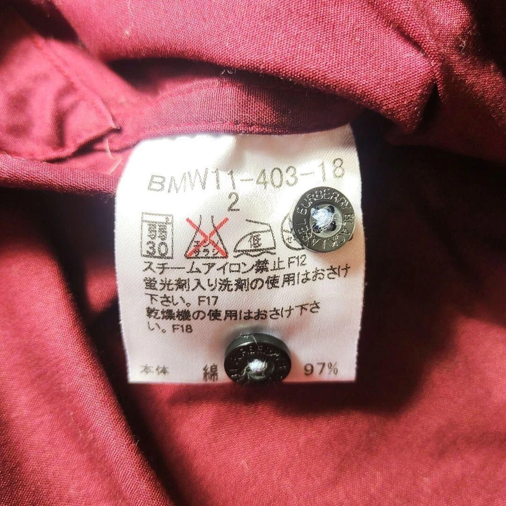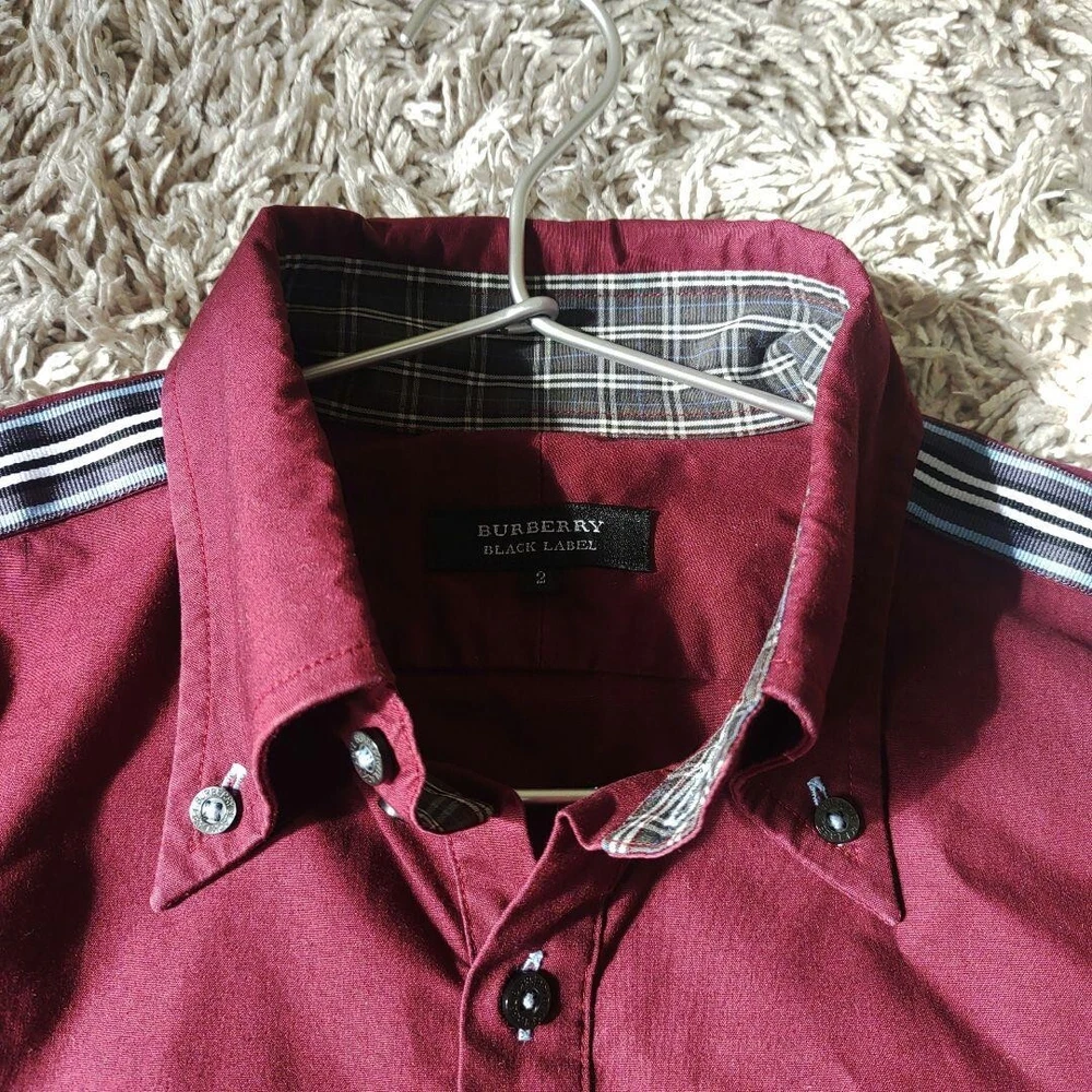 Personalize: No Fit: Slim Character: NA Country/Region of Manufacture: Thailand Collar Style: NA Neckline: Collared Brand: Burberry UPC: Does not apply Vintage: No Size: 2 Garment Care: NA Department: Men Model: NA MPN: NA Occasion: Business, Casual, Travel Product Line: NA Chest Size: 40.1 in Pattern: Check Fabric Type: NA Handmade: No Closure: Button Sleeve Length: Long Sleeve Accents: Button Type: Button-Up Season: Fall, Spring, Winter Material: Cotton Features: NA Color: Red gtin13: Does not apply Size Type: Regular Theme: NA