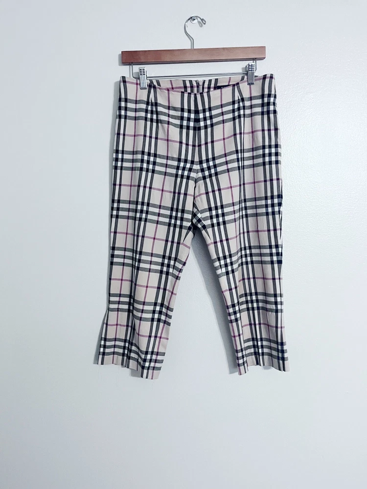 In excellent condition A crop Ankle slits All stretch but waist Waist is near 32 1/2 in Inseam is 19 1/2 in Hidden back zip