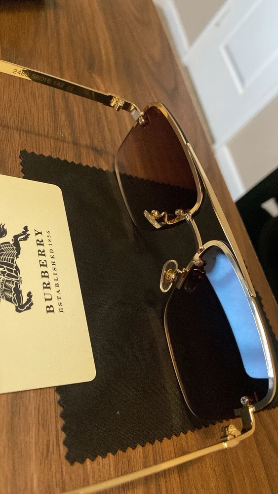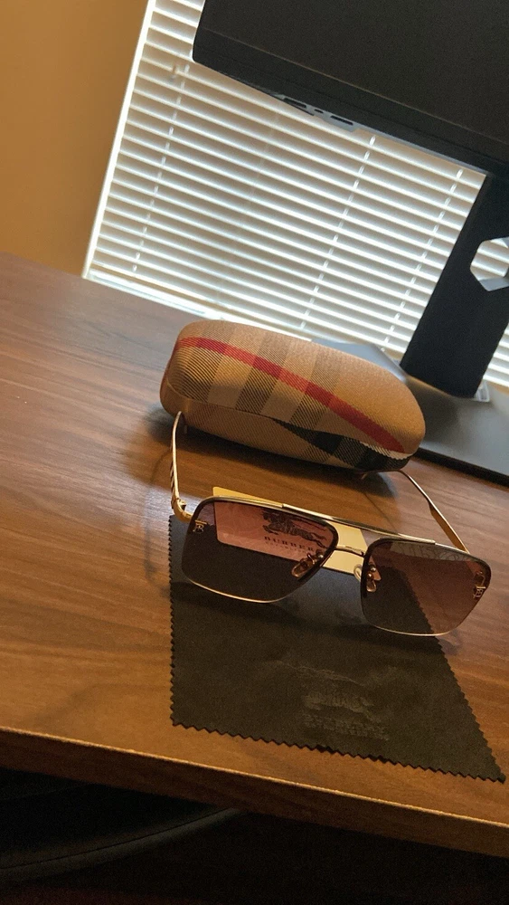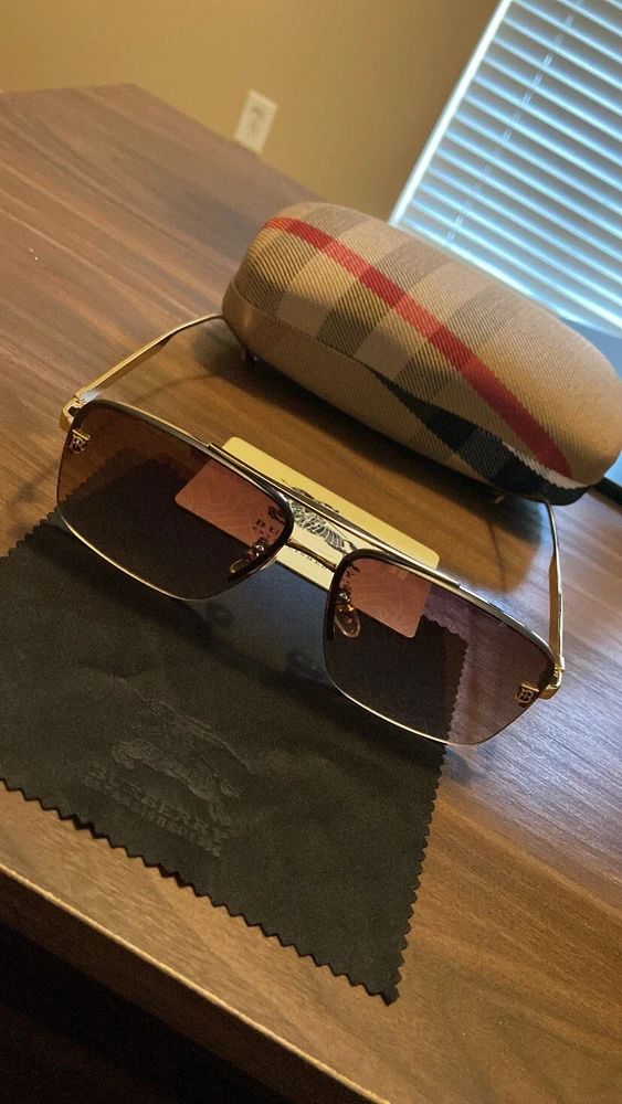 Elevate your style with these chic Burberry sunglasses. The gold frame color and pilot style make them a perfect accessory for any fashion-forward individual. The plastic frame material ensures durability, while the original design adds a touch of authenticity. These unisex sunglasses are perfect for anyone who wants to make a statement with their fashion choices. The military/landgirl look is a classic that never goes out of style, and these Burberry sunglasses are no exception. Add them to your vintage accessory collection today.