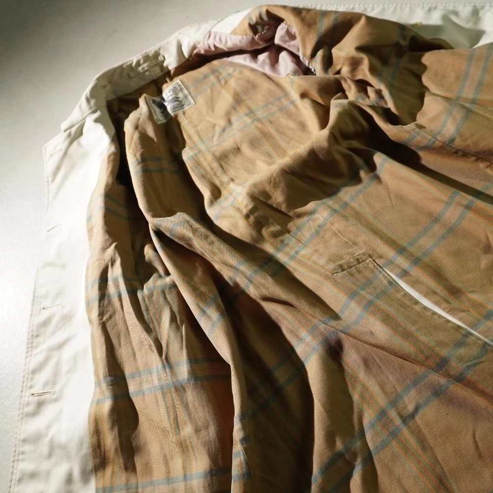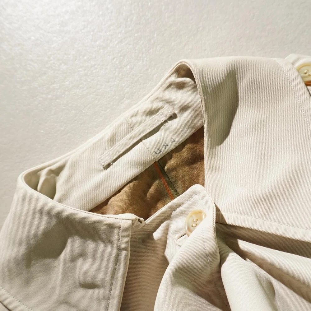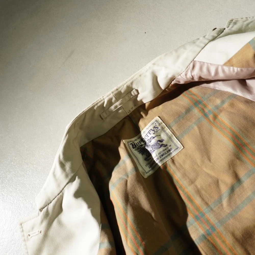 Warmth Weight: NA Garment Care: NA Size: Free Personalize: No Theme: NA Pattern: Check Collar Style: NA Handmade: No Style: Trench Coat Lining Material: NA Fit: Slim MPN: NA Accents: Button Chest Size: 35.4 in Closure: Button Outer Shell Material: NA Insulation Material: NA Features: Belted, Collared Season: Fall, Spring, Winter Type: Coat Occasion: Business, Casual, Travel Model: NA Performance/Activity: Walking gtin13: Does not apply Jacket/Coat Length: 35.8 in Fabric Type: NA Size Type: Regular Department: Men Vintage: No Product Line: NA Color: Beige UPC: Does not apply Brand: Burberry