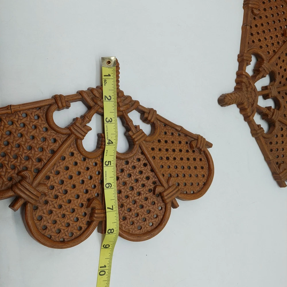 Burwood Wall Fans & Butterflies Hanging Plaques Brown Vintage Wicker Design